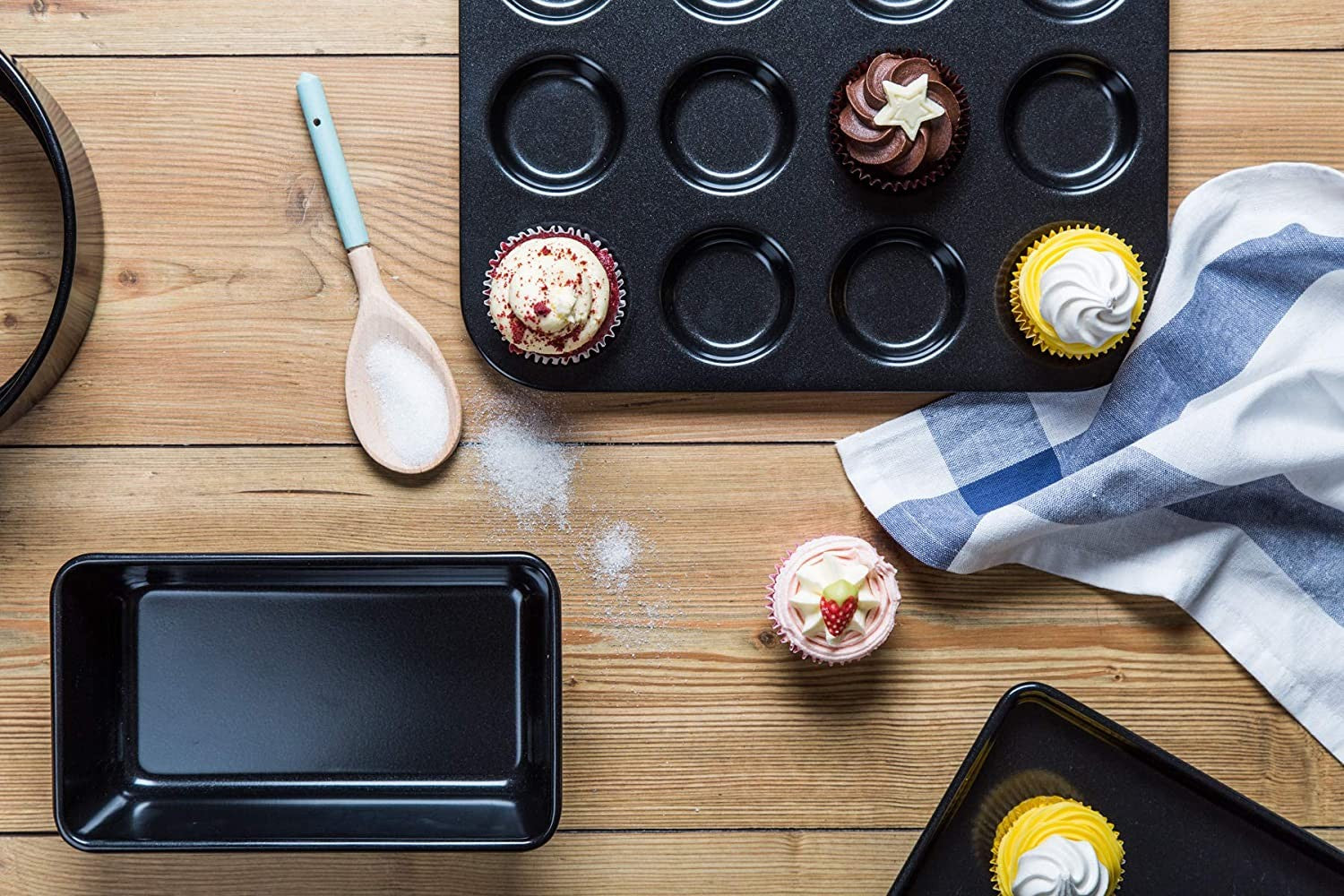 Upgrade your bakeware collection with this Tala Performance Large Black Baking Sheet, crafted for home bakers who demand both strength and performance. Built from heavy-duty 1 mm carbon steel and coated with a durable three-layer non-stick finish, this tray resists scratches—even when used with metal utensils—and offers exceptional heat distribution for consistent results. It can withstand oven temperatures up to 240 °C, making it perfect for everything from cookies and biscuits to savory roasts.