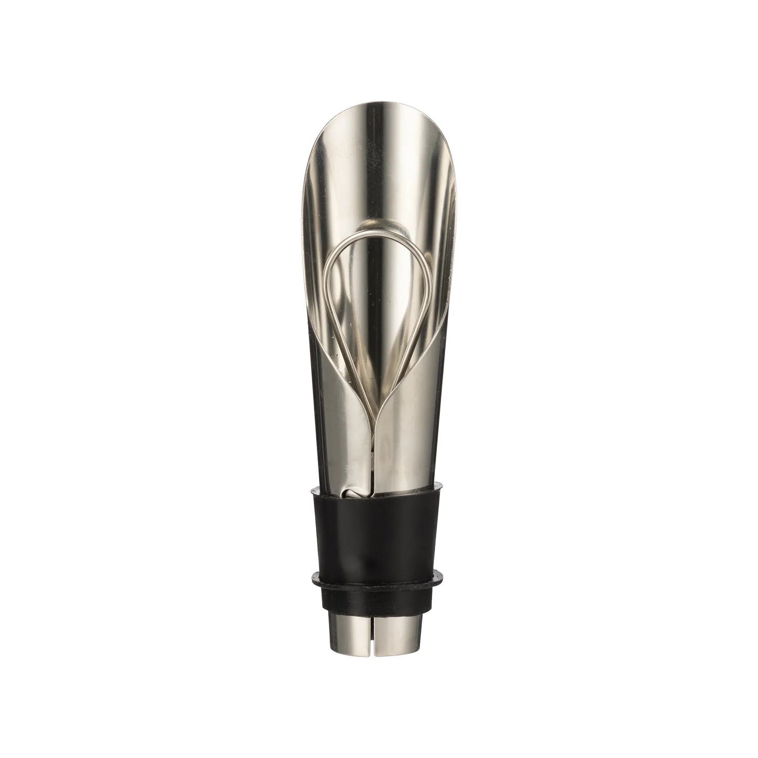 Enhance your wine experience with the Viners® Wine Pourer & Stopper Set. Expertly crafted from durable stainless steel, this elegant barware ensures a smooth, controlled pour—no drips, no mess. The removable stopper features a secure silicone seal to help preserve the freshness and flavor of your wine. Designed to fit most bottle necks, it’s as practical as it is stylish. Simply press onto the opened bottle top for an instant upgrade to your wine service.