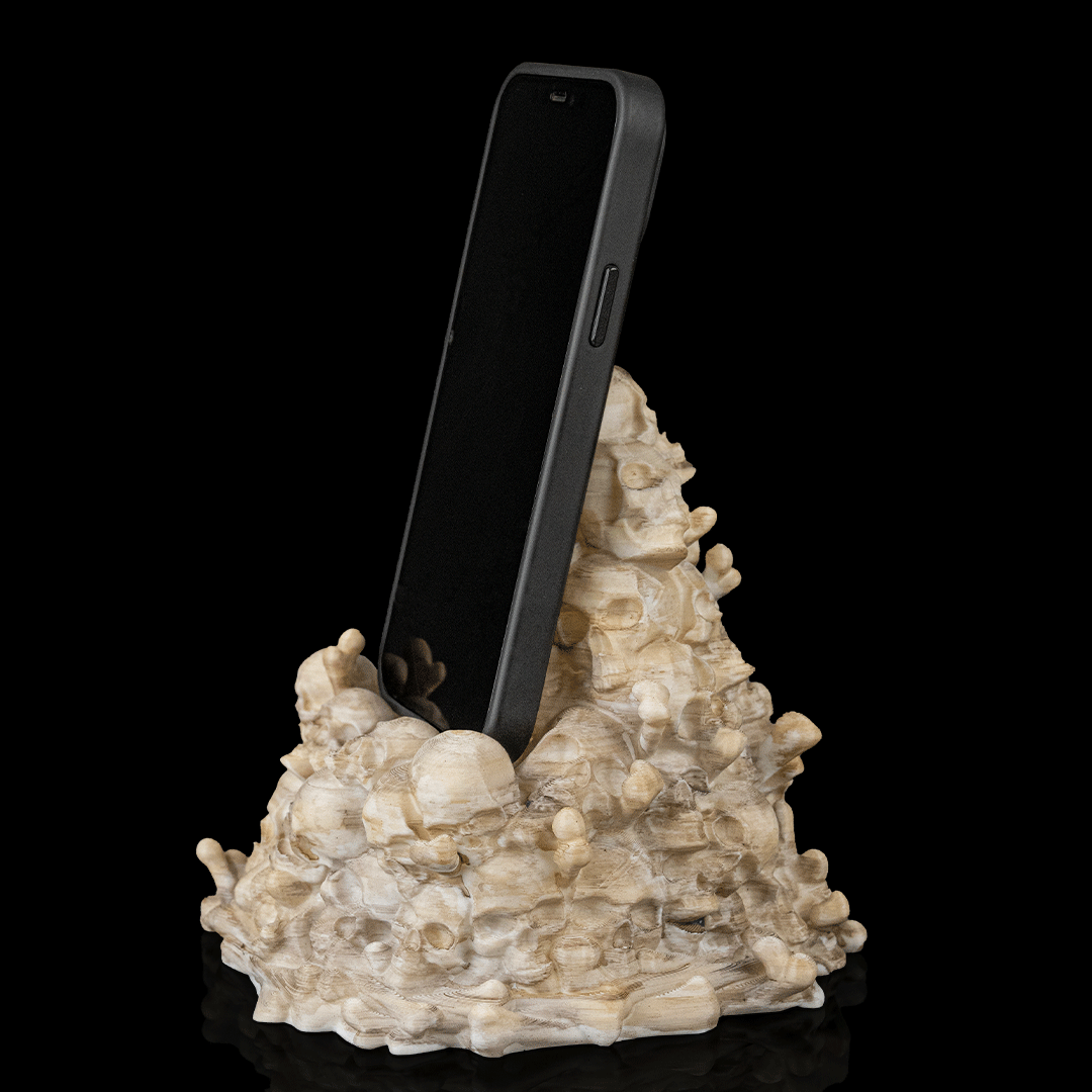 A phone holder with a dark and powerful presence, the Bone Throne Phone Stand lets your device rule from a grim and formidable seat.