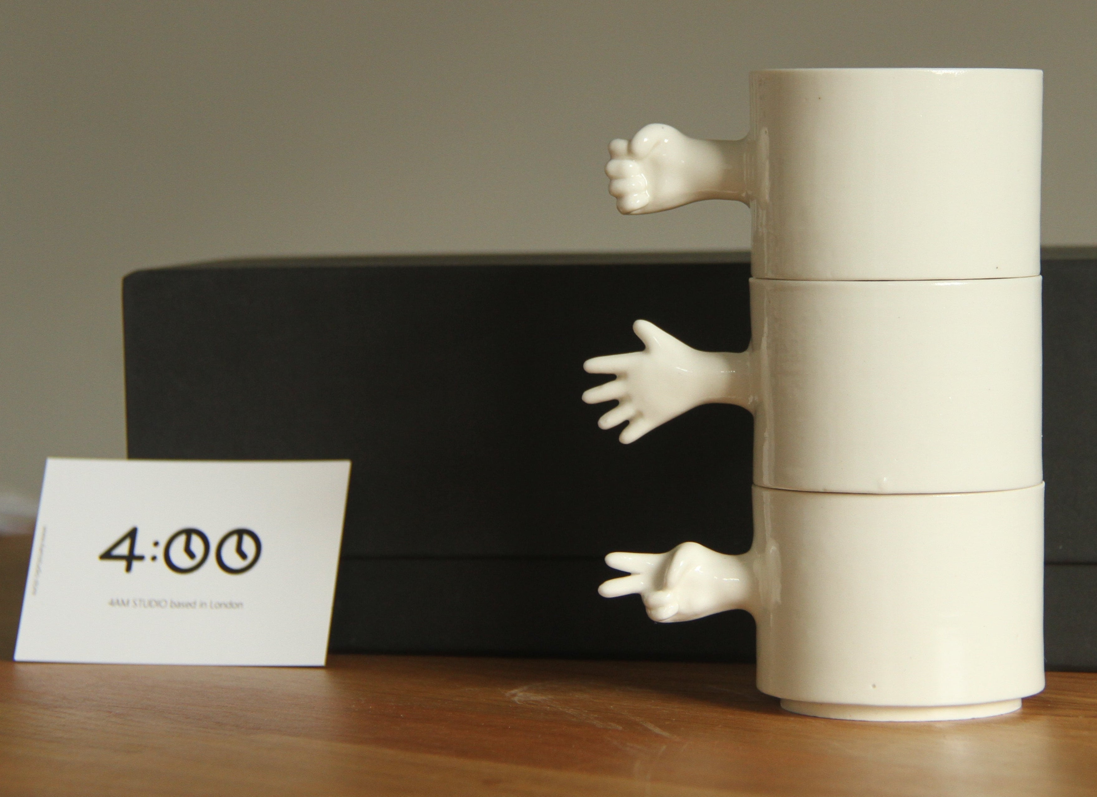 The ‘GESTURE CUPS’ series of porcelain cups by 4AM Product Design captures the fluidity and expressiveness of human gestures. Each cup in the series is crafted using a combination of throwing and slip casting techniques to visually represent different gestures. What makes the collection unique is that three of the gestures are combined to create an interesting rock-paper-scissors set, with each cup symbolizing a classic gesture. This creative approach not only brings a sense of interactivity and playfulness to the work, but also invites the user to interact with the cups in a vibrant and imaginative way. the ‘GESTURE CUPS’ series reflects 4AM Product Design's exploration of the intersection between form, function, and the expressive power of the human hand, making each piece both a functional object and a work of art.