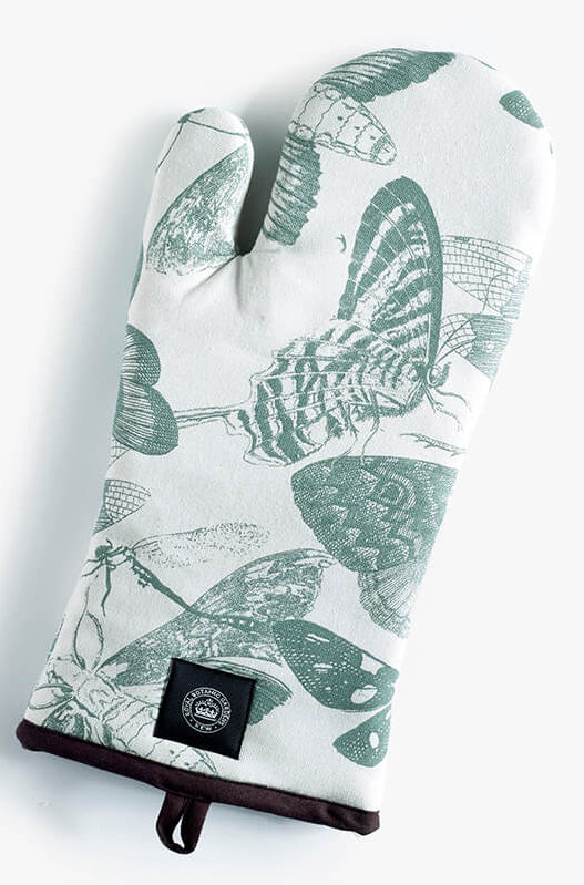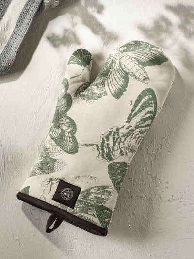 Bring a touch of botanical elegance to your kitchen with the Kew Gardens Living Jewels Single Oven Glove. Inspired by the intricate insect and plant illustrations from the Kew archives, this glove features a richly detailed design set against a neutral background, making the beautiful colors and textures truly pop.