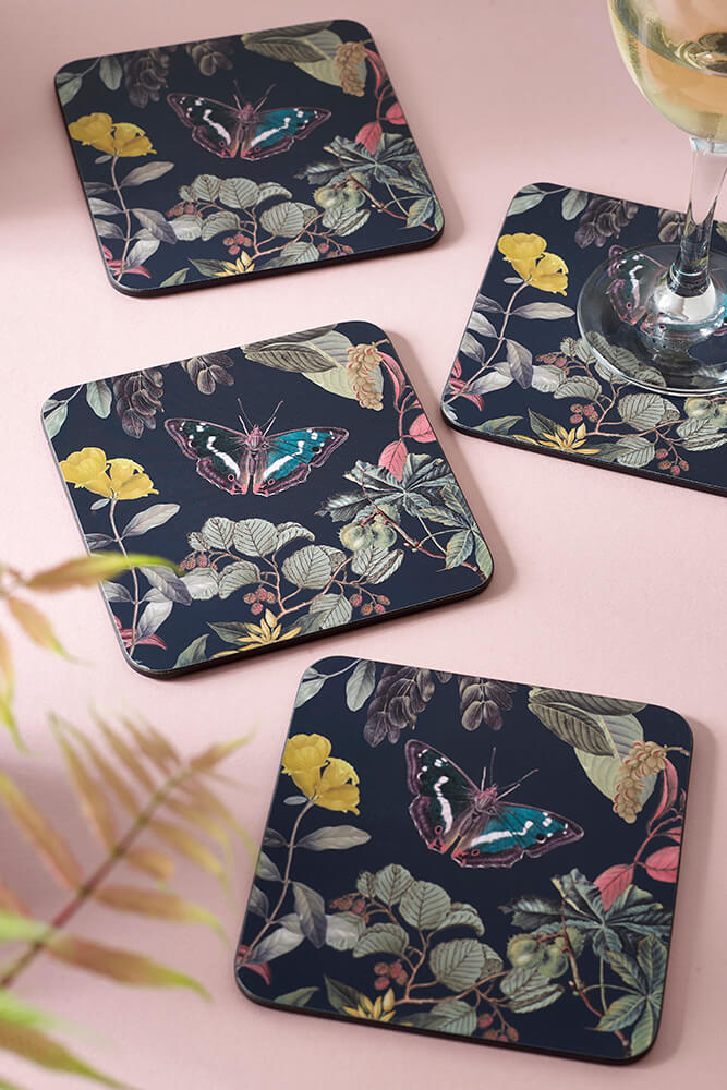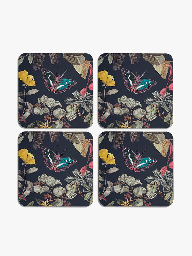 Kew Gardens Midnight Floral Square Coaster (Set of 4)