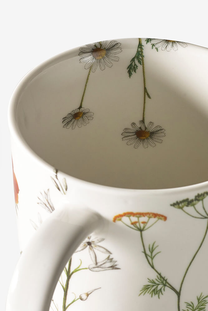 Enhance your tea or coffee experience with the Kew Gardens Wild Floral White Mug. Crafted from high-quality fine china, this elegant mug showcases intricate wildflower illustrations, including daisies and poppies, set against a crisp white background. Inspired by the Royal Botanic Gardens, Kew's archives, this design brings the beauty of nature to your daily routine. The mug's generous size and comfortable handle make it perfect for enjoying your favorite hot beverages. It's both microwave and dishwasher safe, ensuring convenience without compromising on style.