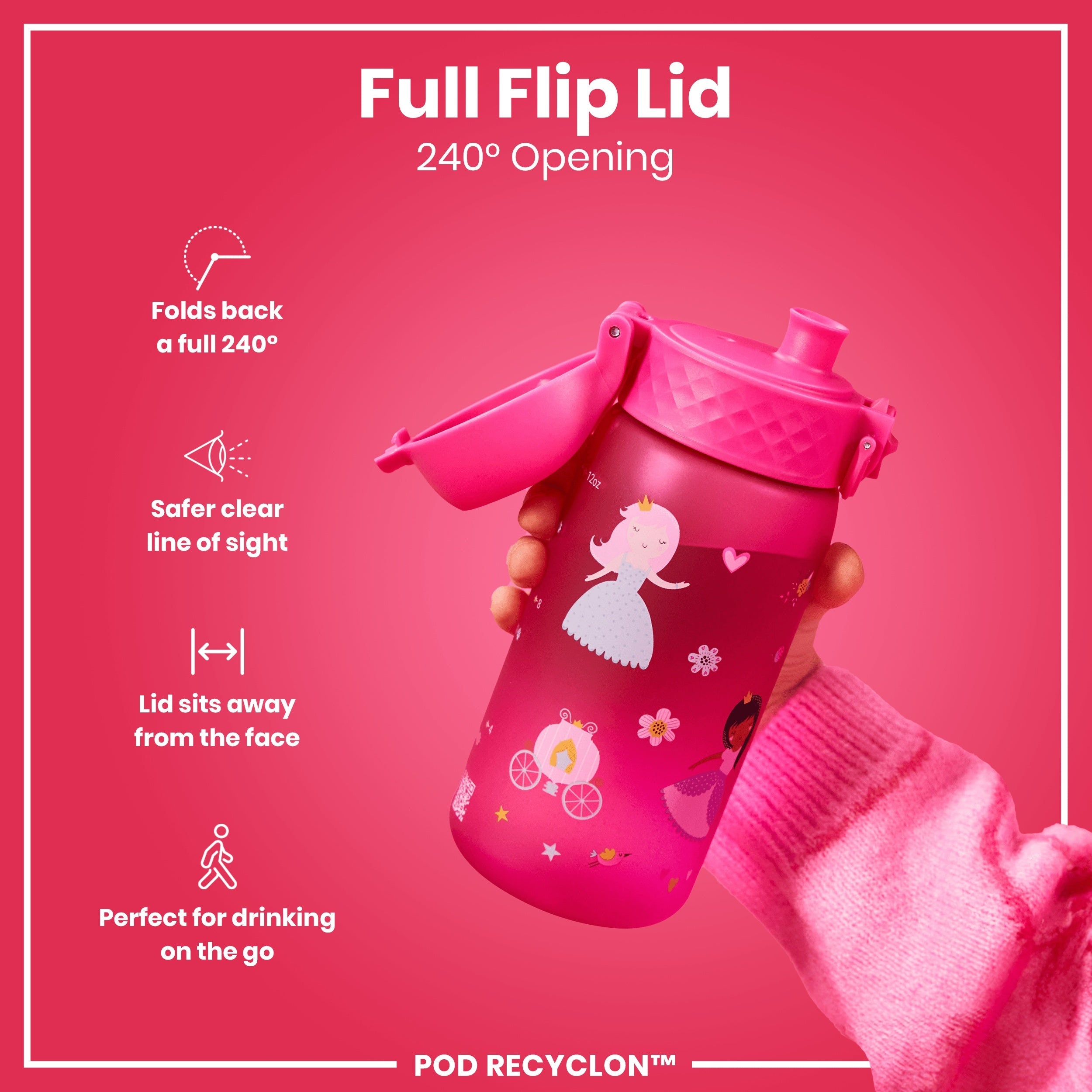 The Ion8 Leak-Proof Kids Water Bottle – Recyclon Princess 350ml (12oz) combines functionality, style, and sustainability. Crafted from Recyclon™, a transparent carbon-neutral plastic partly made from plants.