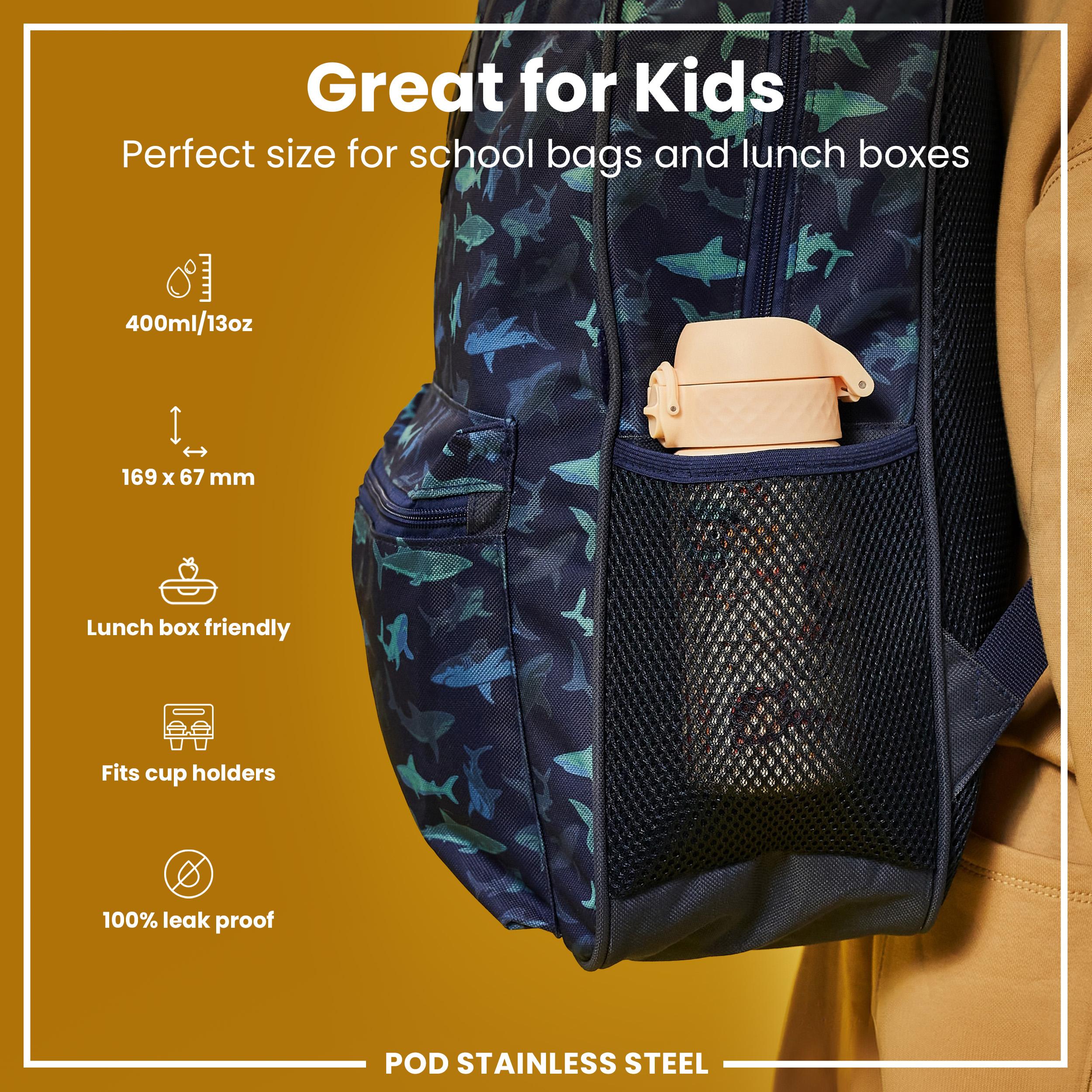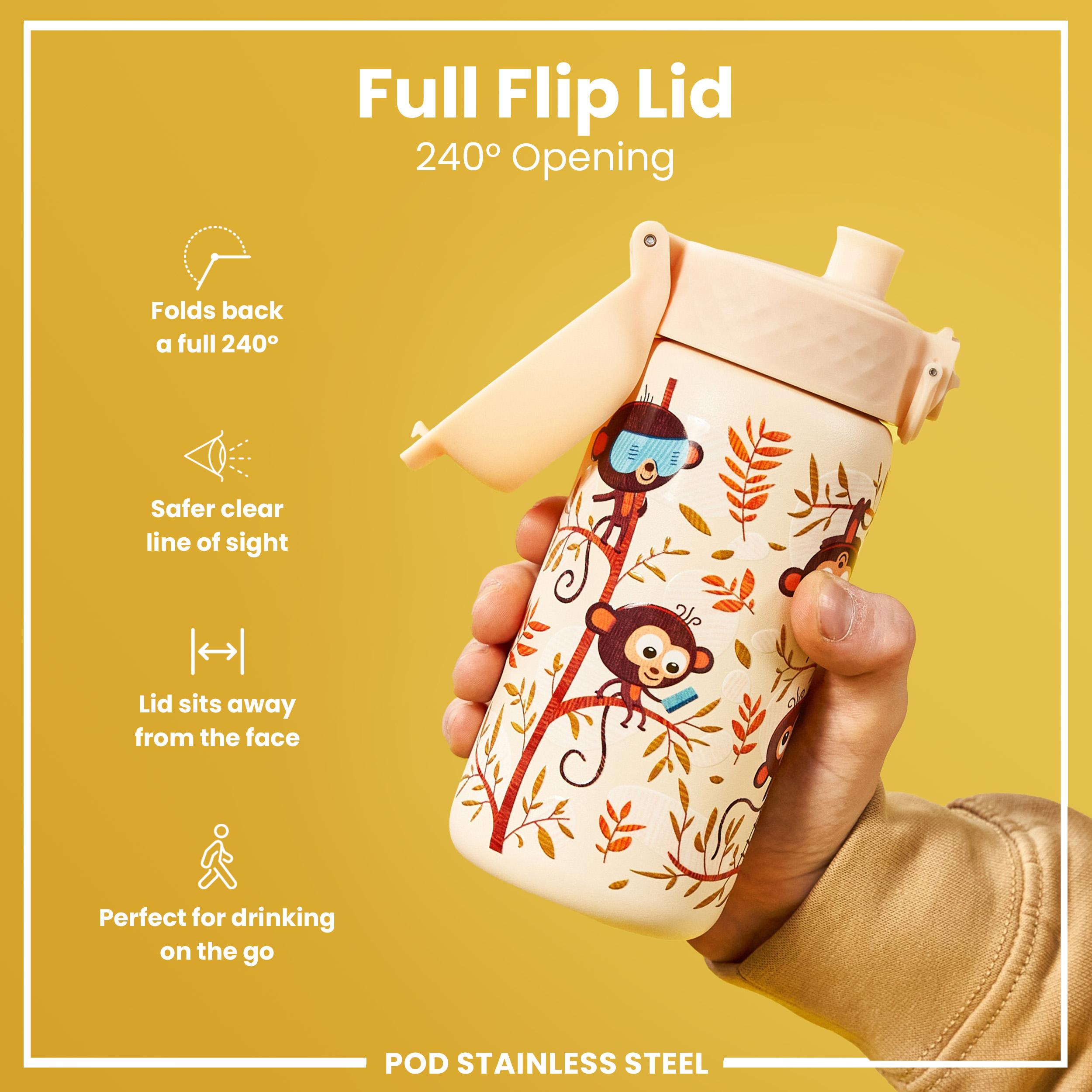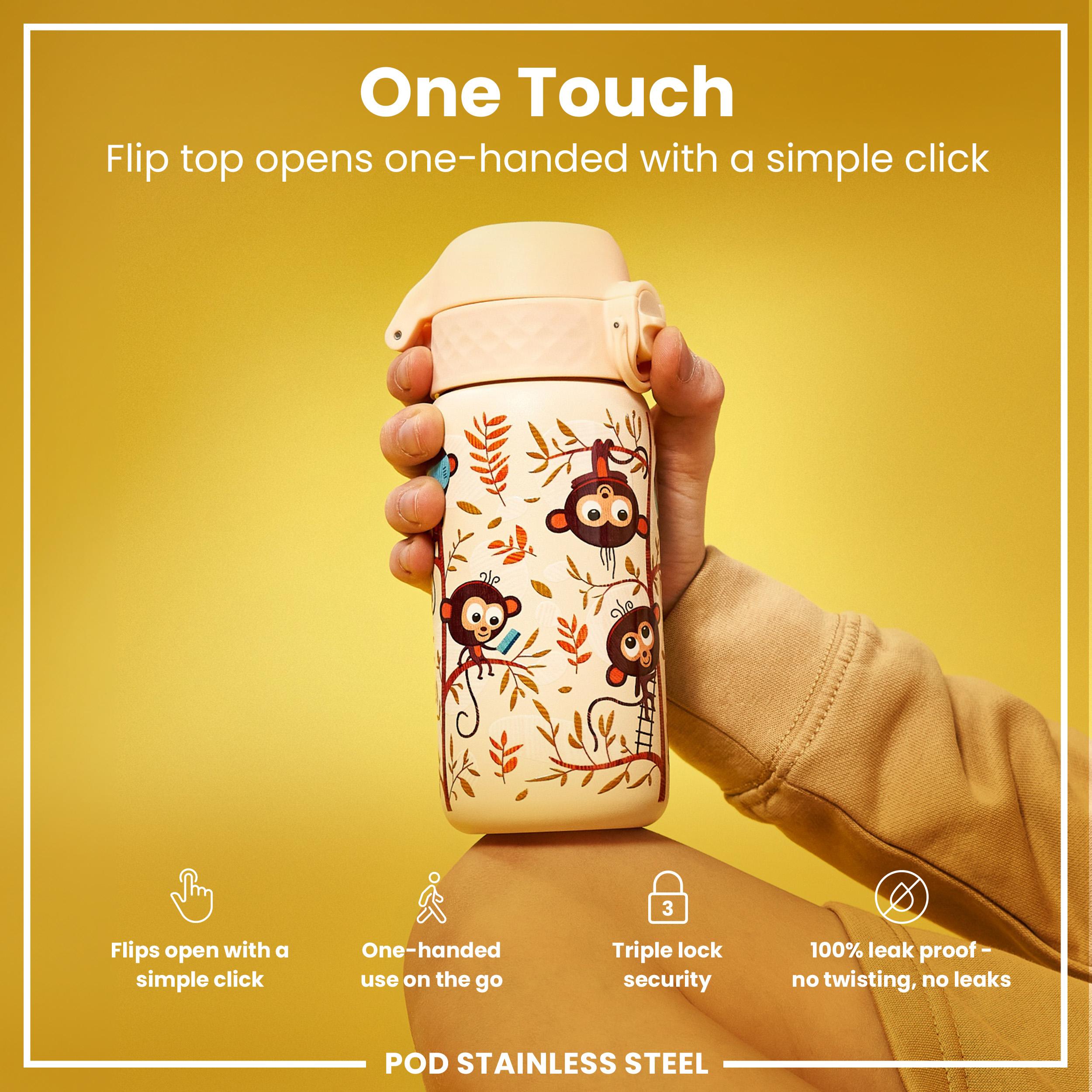Leak Proof Kids Water Bottle, Stainless Steel, Monkeys, 400ml (13oz)