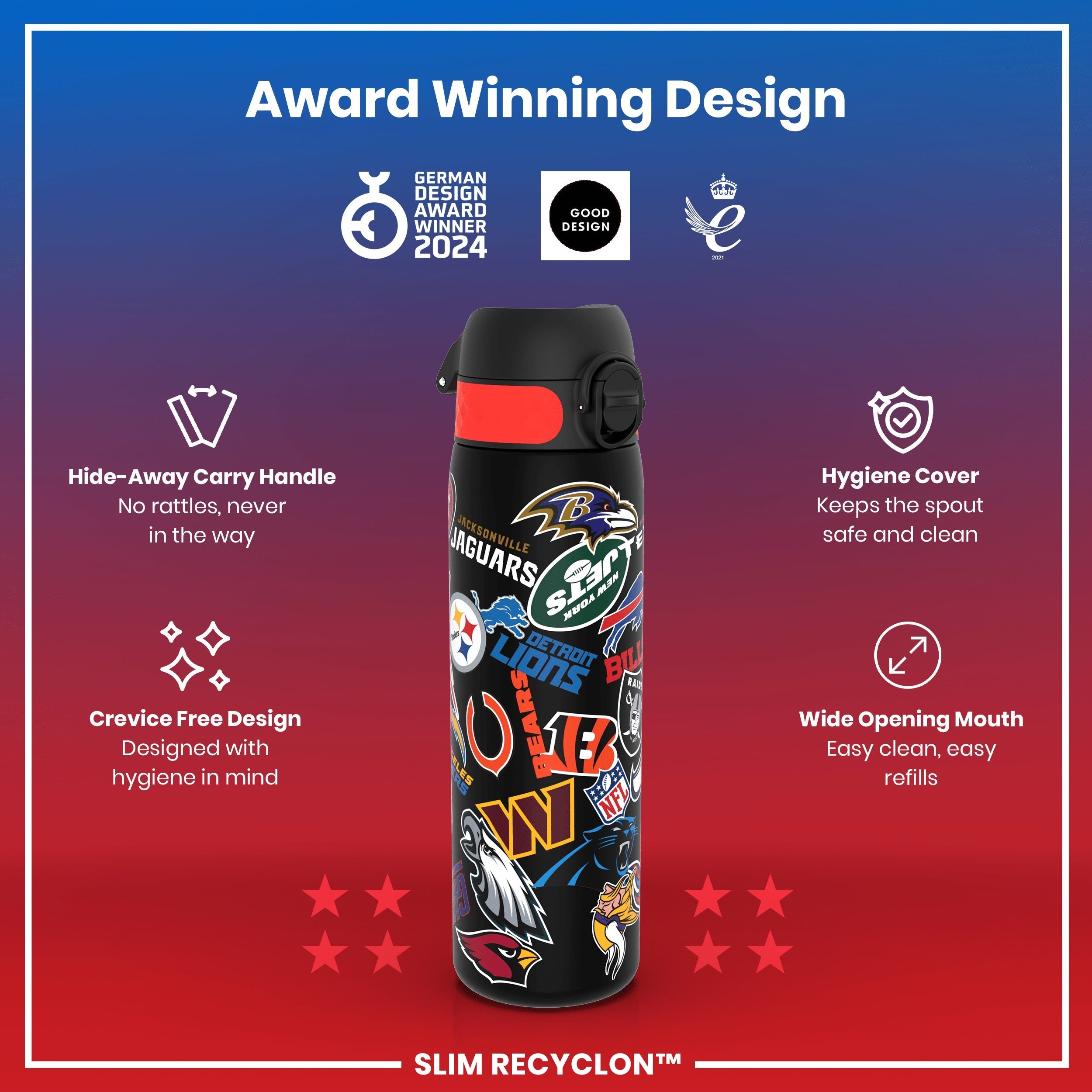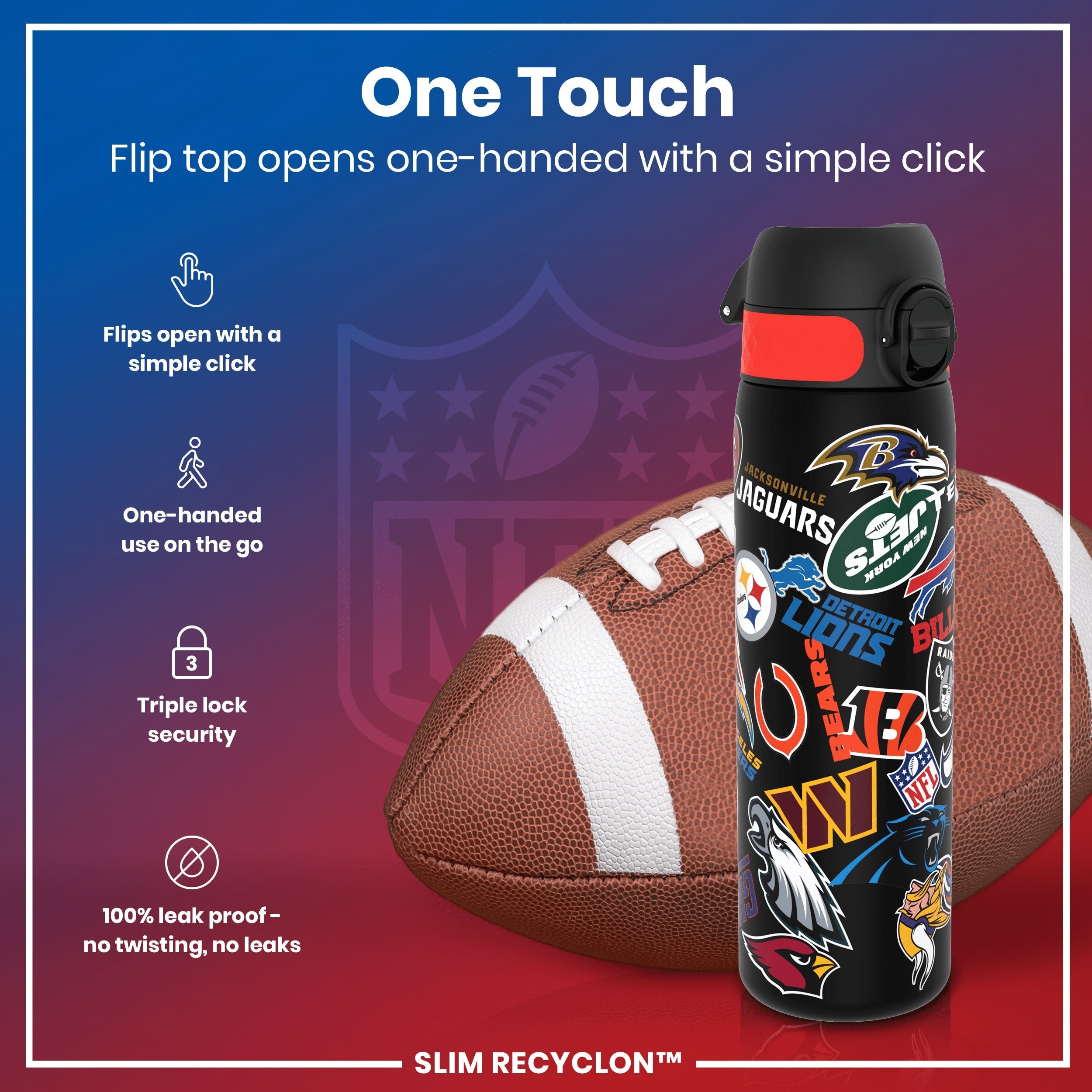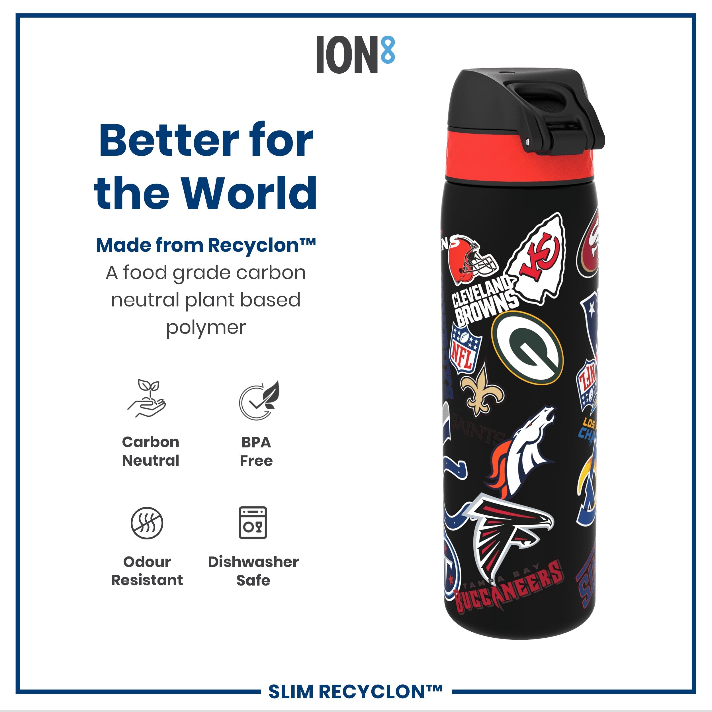 Leak Proof NFL Water Bottle, Recyclon, Patch Logos, 500ml (18oz)