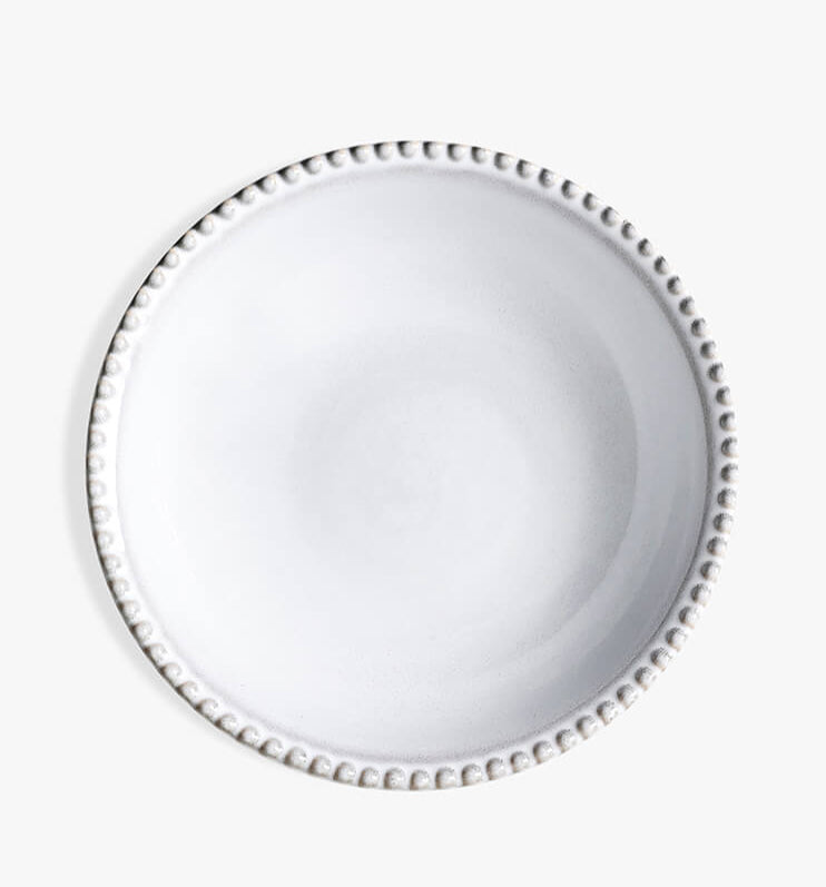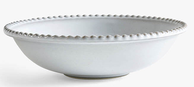 Enhance your dining experience with the MM Living Glacier Bobble Pasta Bowl. Crafted from high-quality stoneware, this bowl features a smooth, glossy finish with intricate beaded edge detailing in a soft grey glaze. Measuring 20 cm in diameter and 6 cm in height, it's ideal for serving pasta, salads, or soups. Each piece is hand-glazed, ensuring a unique and translucent finish. Sourced from Portugal, this bowl combines functionality with elegance, making it a perfect addition to your tableware collection.