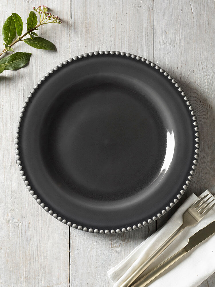Elevate your dining experience with the MM Living Grey Bobble Dinner Plate. Crafted from high-quality stoneware, this 29 cm plate features a smooth, glossy glaze in a deep charcoal grey tone. The beaded edge detailing adds a touch of texture and sophistication, making it a standout piece on your table.
