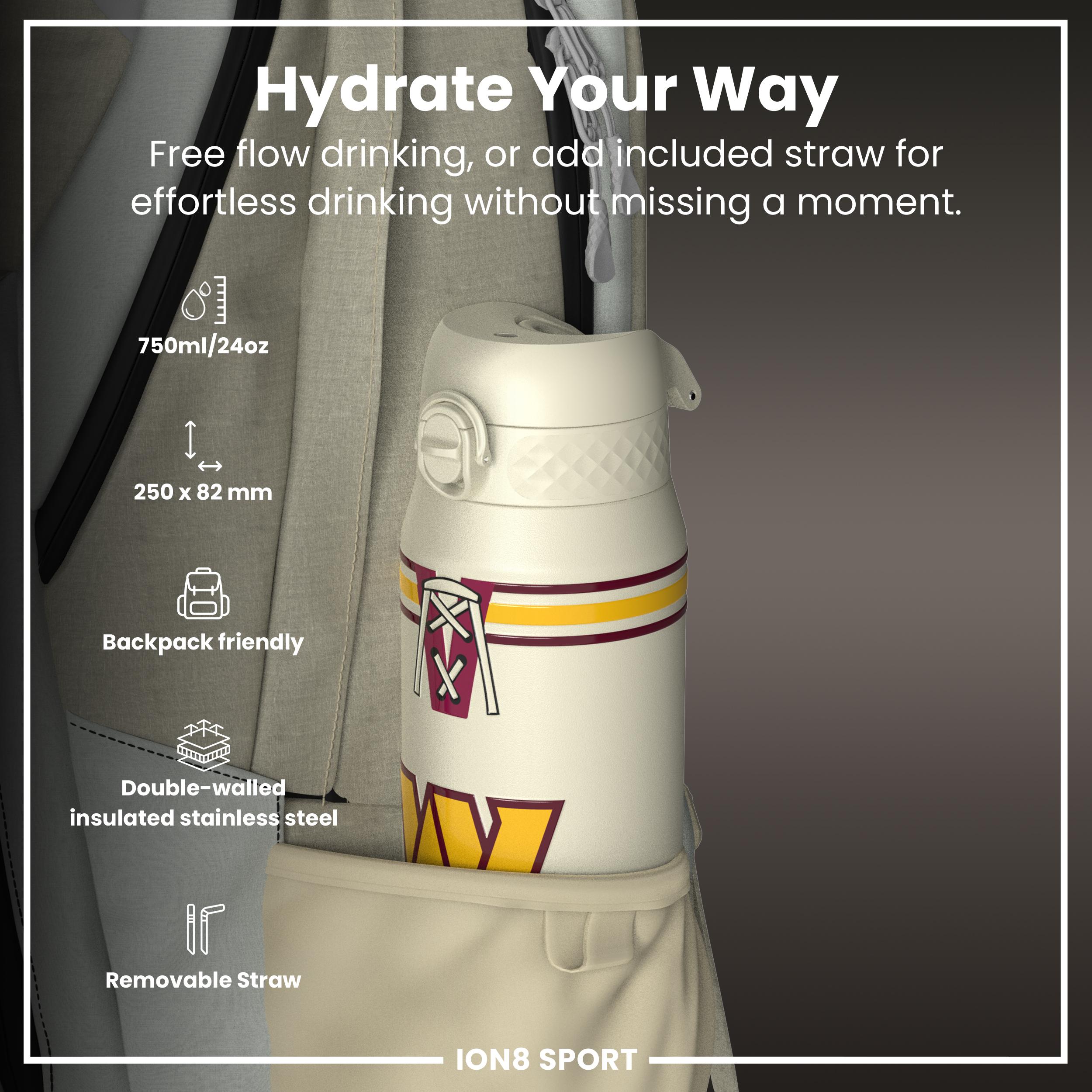 NFL x ION8 Insulated Steel Water Bottle, NFL Commanders, 750ml (24oz)