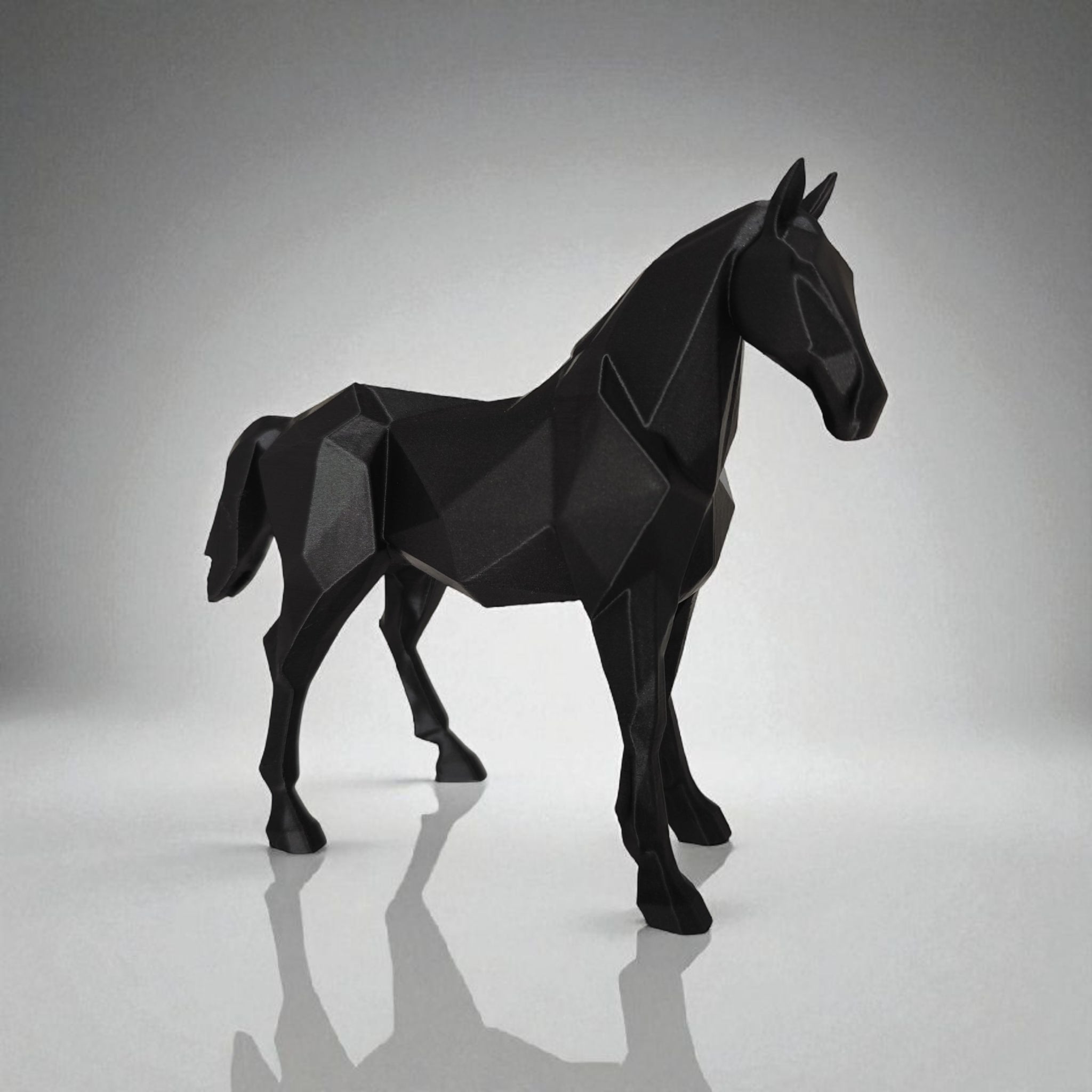 Bring a touch of modern minimalism into your home with this unique low-poly stallion sculpture. This striking piece is a perfect blend of artistic expression and contemporary style, designed to elevate any space.