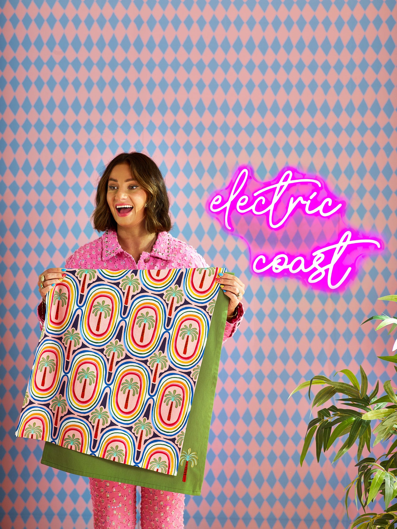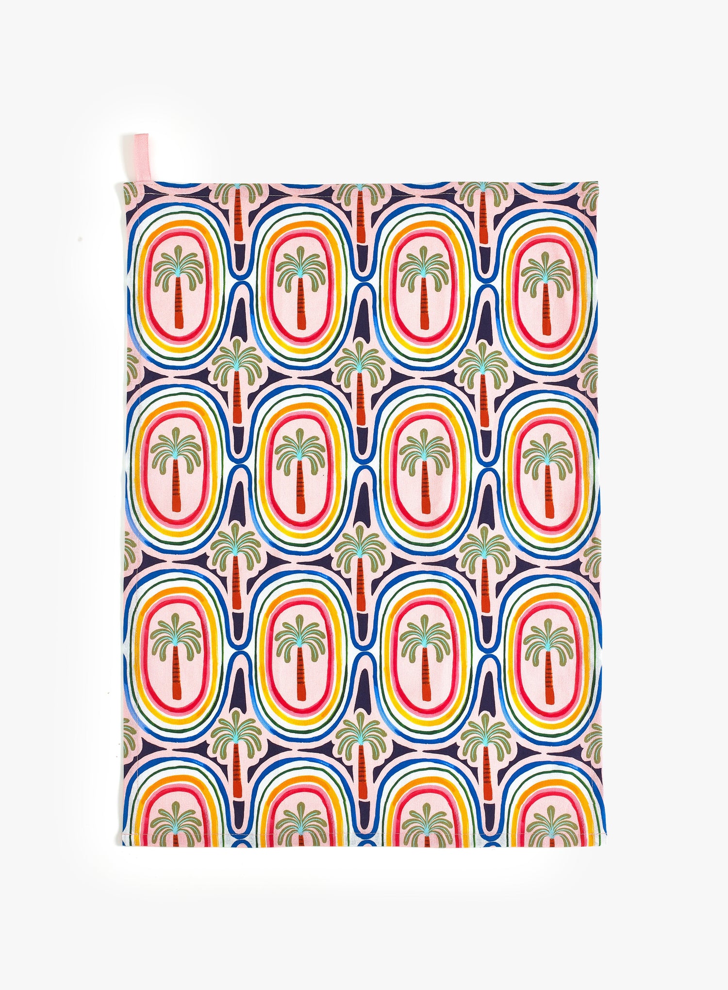 Brighten up your kitchen with the Eleanor Bowmer Electric Coast Palm Tree Tea Towels set. This two-piece set features towels with an embroidered palm tree motif in a fresh pink and green palette. Crafted from 100% cotton.
