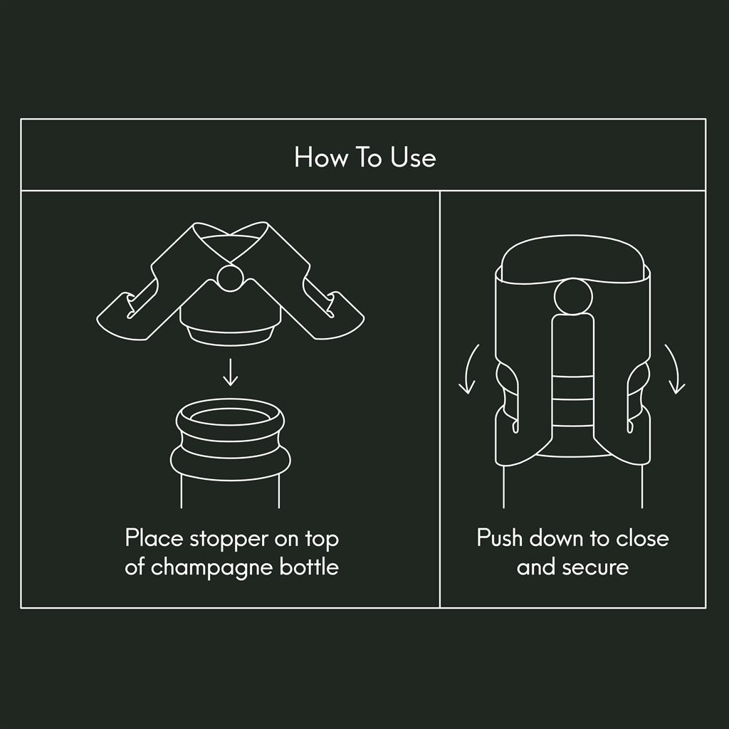 Keep your prosecco, champagne or cava bubbly for longer with the Viners Barware Champagne Bottle Stopper. Its clever push-down, wing-style mechanism locks securely around the bottle neck to maintain an airtight seal, preserving the fizz and preventing your sparkling wine from going flat.