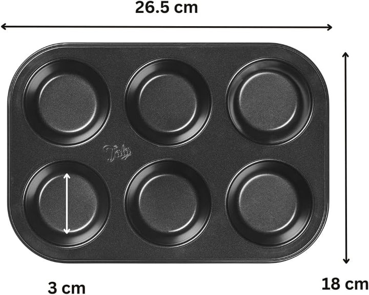 Consistent batch baking: Six-well configuration allows uniform heat transfer for precise muffin domes and consistent baking times