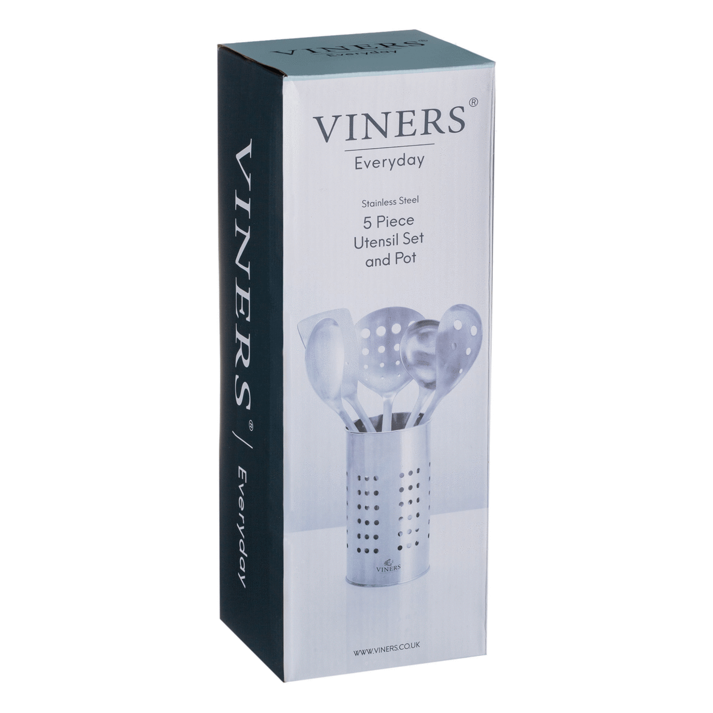 The Viner's Everyday 5 piece utensil set offers a solid spoon, slotted spoon, ladle, skimmer, and slotted turner allowing you to cook up a storm in the kitchen. All utensils are beautifully finished with brushed stainless steel with a matching storage pot.