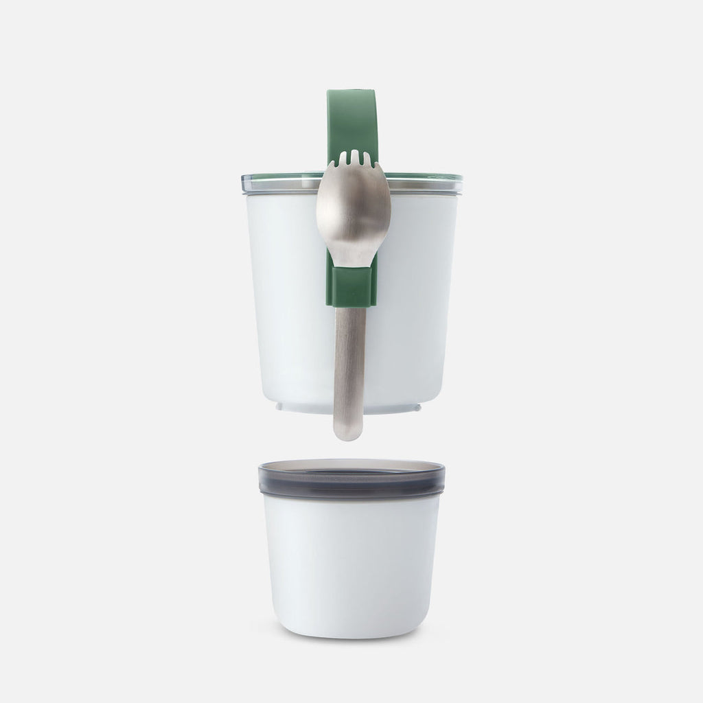 • Includes stainless-steel spork (spoon + fork) and carry handle