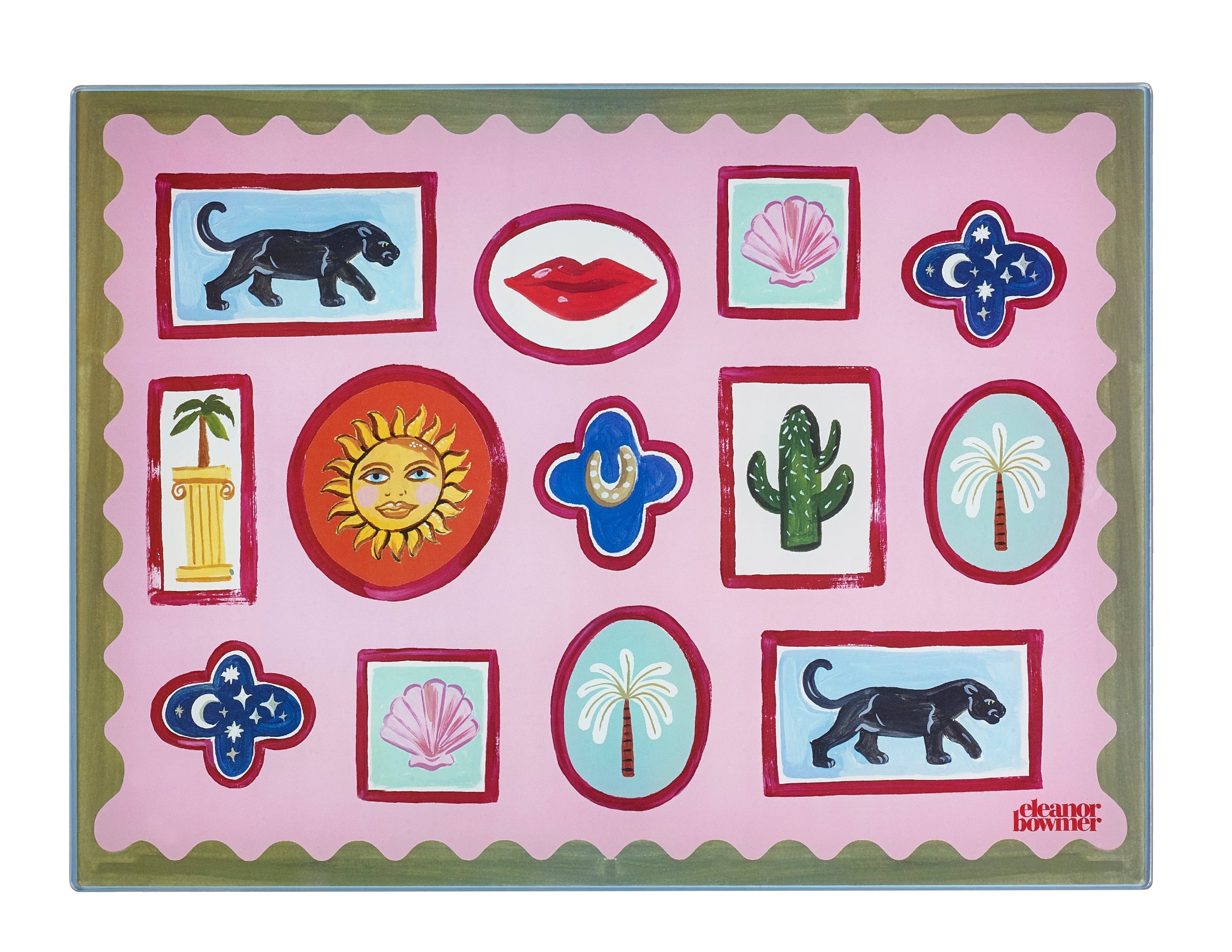 Elevate your kitchen aesthetics with the Eleanor Bowmer Electric Coast Worktop Saver. Designed by the renowned British artist Eleanor Bowmer, this piece showcases a vibrant montage of hand-illustrated icons inspired by the golden coastlines of LA. Perfect for adding a pop of color and a breath of fresh air to your kitchen, all year round.