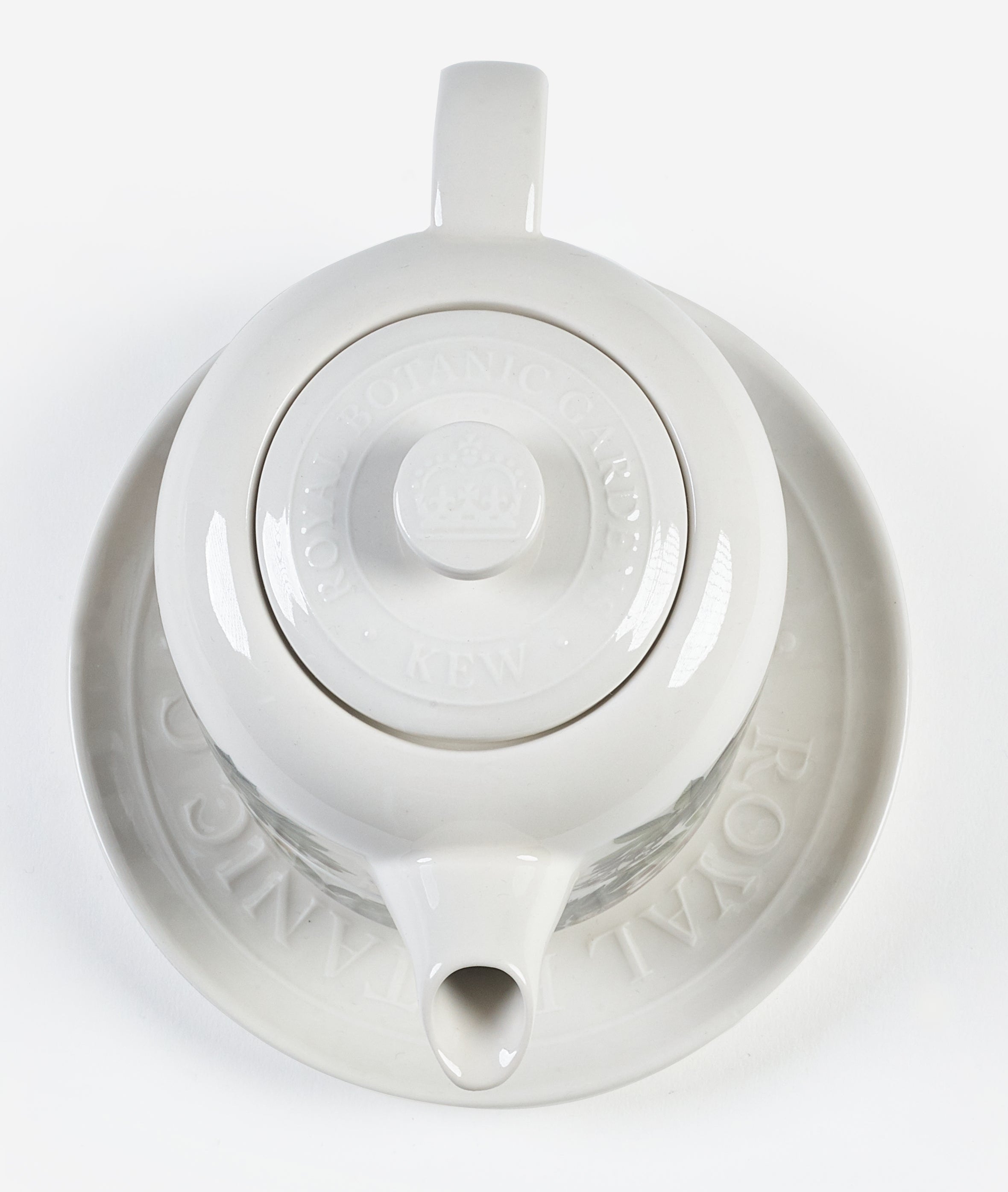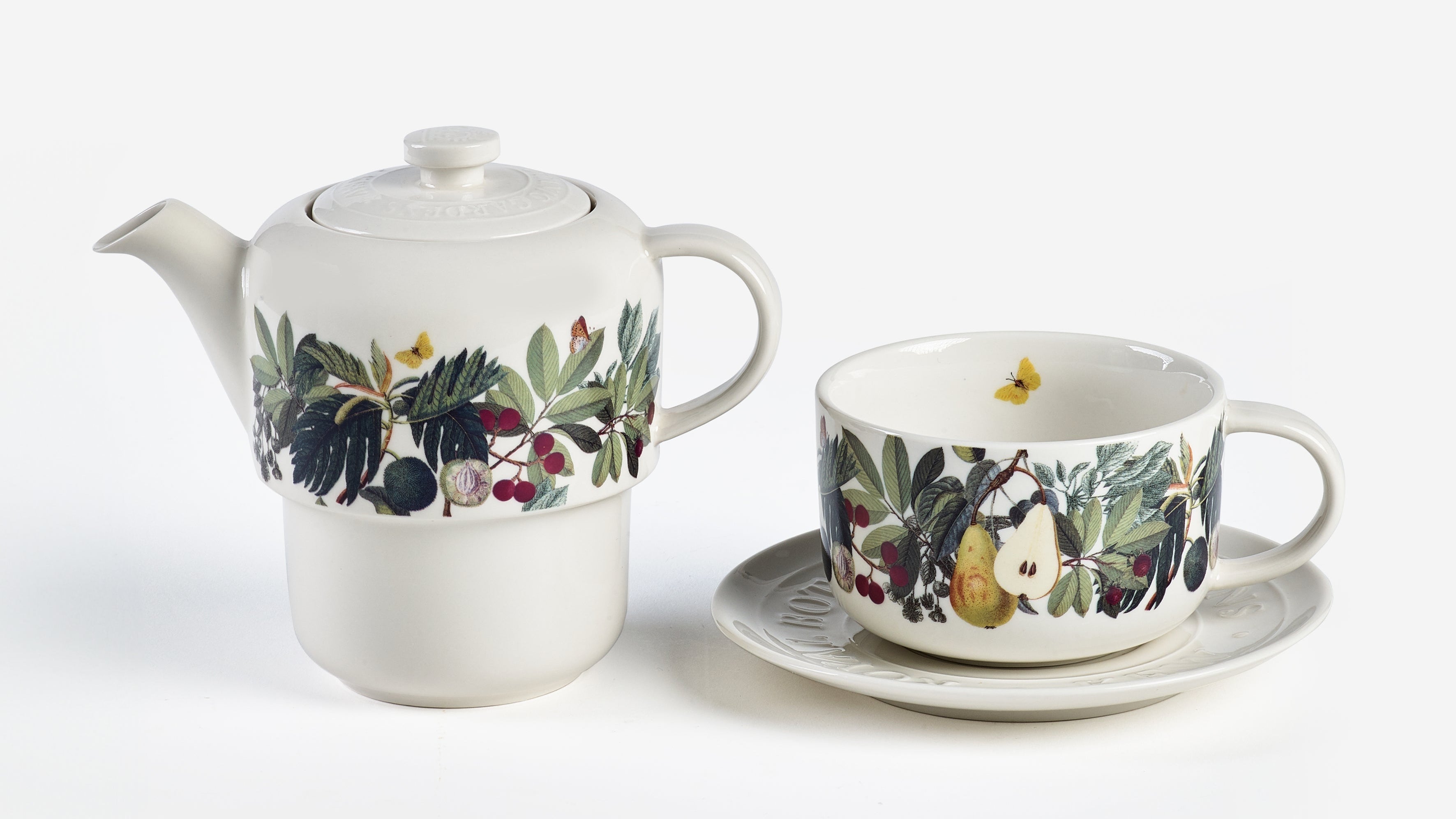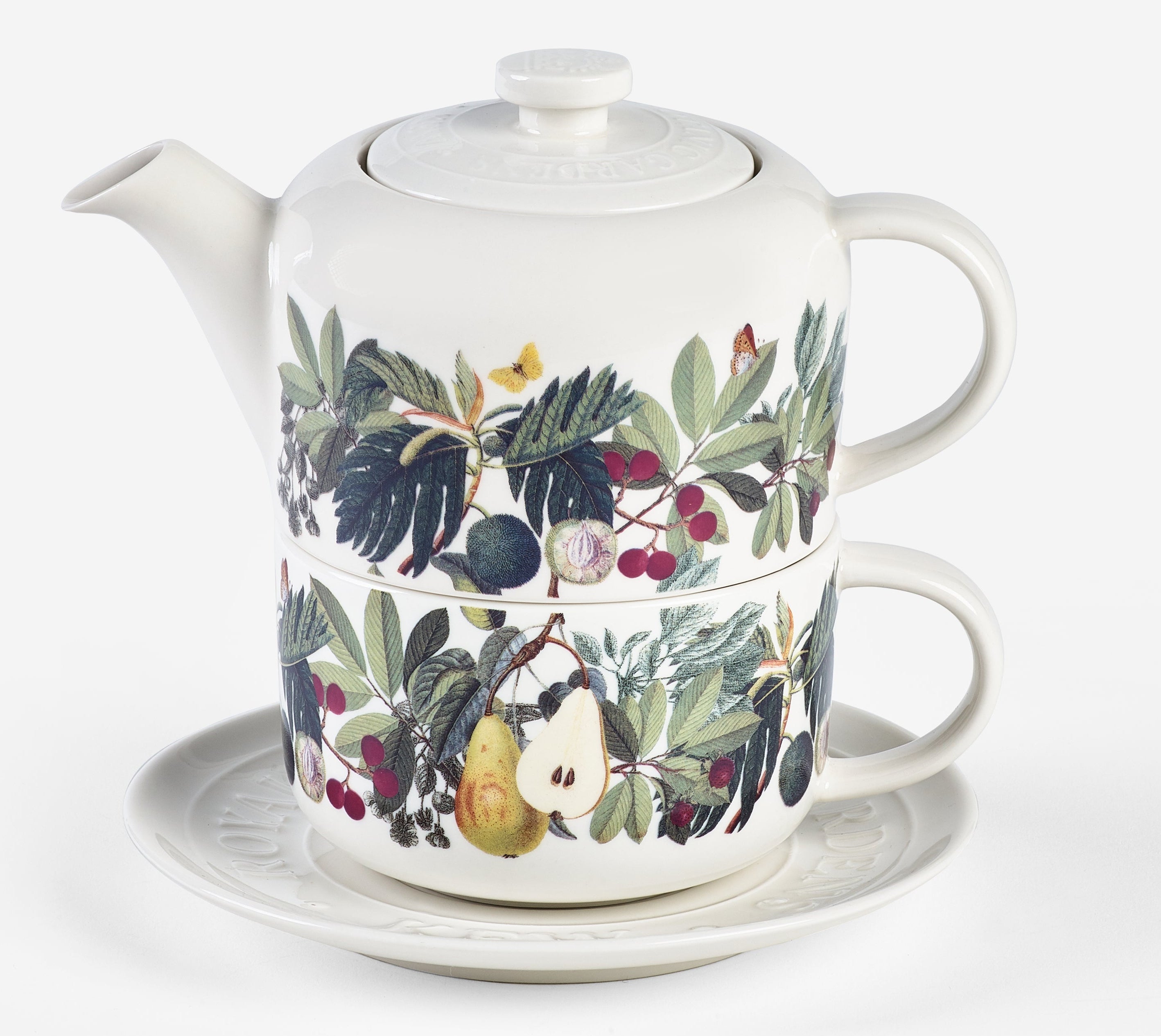 Indulge in a personal tea experience with the Kew Bloom Tea for One. Crafted from high-quality fine china, this set features intricate fruit and floral illustrations inspired by the historical archives of the Royal Botanic Gardens, Kew. The set includes a teapot, teacup, and saucer, all designed to nest together for compact storage. Dishwasher safe for easy maintenance, this tea set combines functionality with botanical elegance.