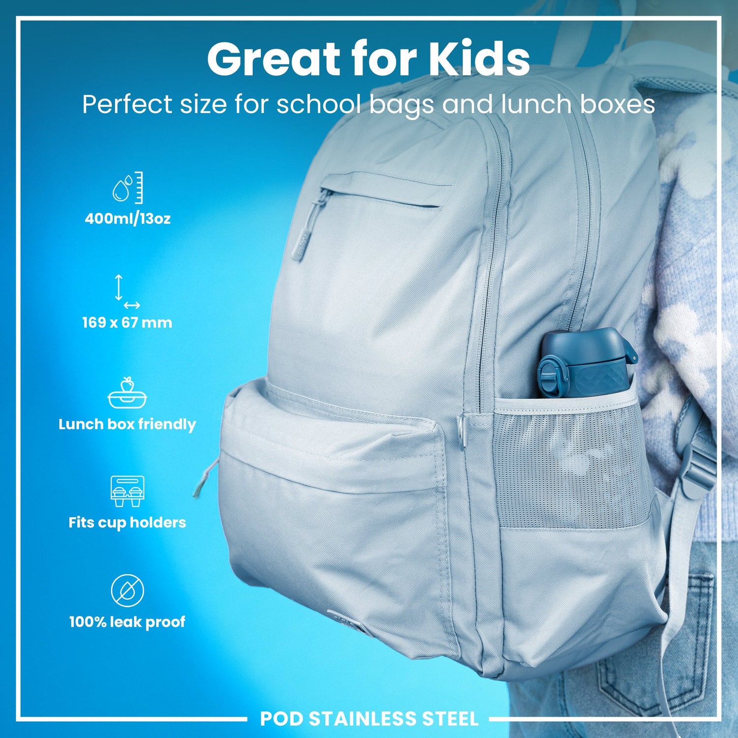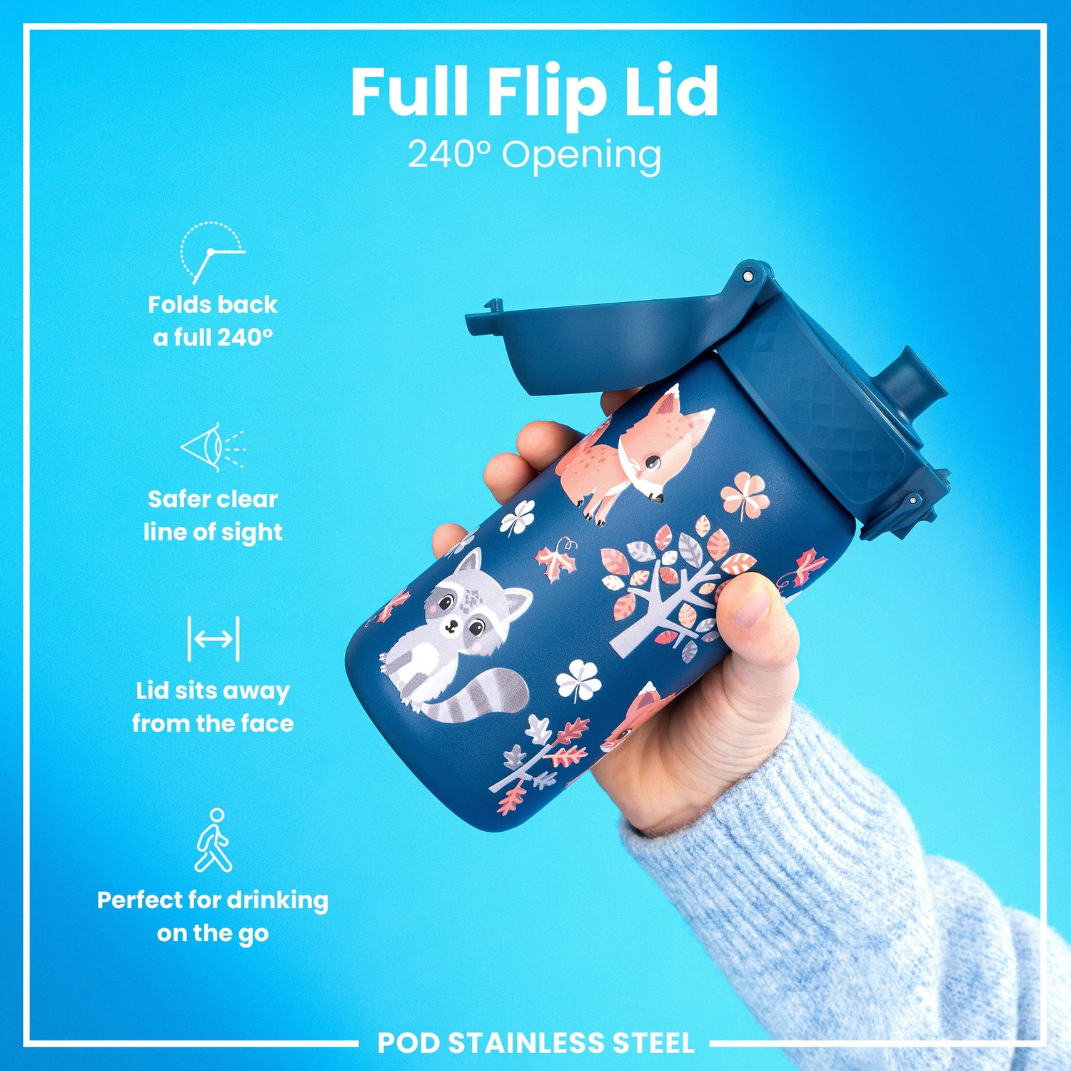 ION8 Leak Proof Kids Water Bottle, Stainless Steel, Forest Animals, 400ml (13oz)