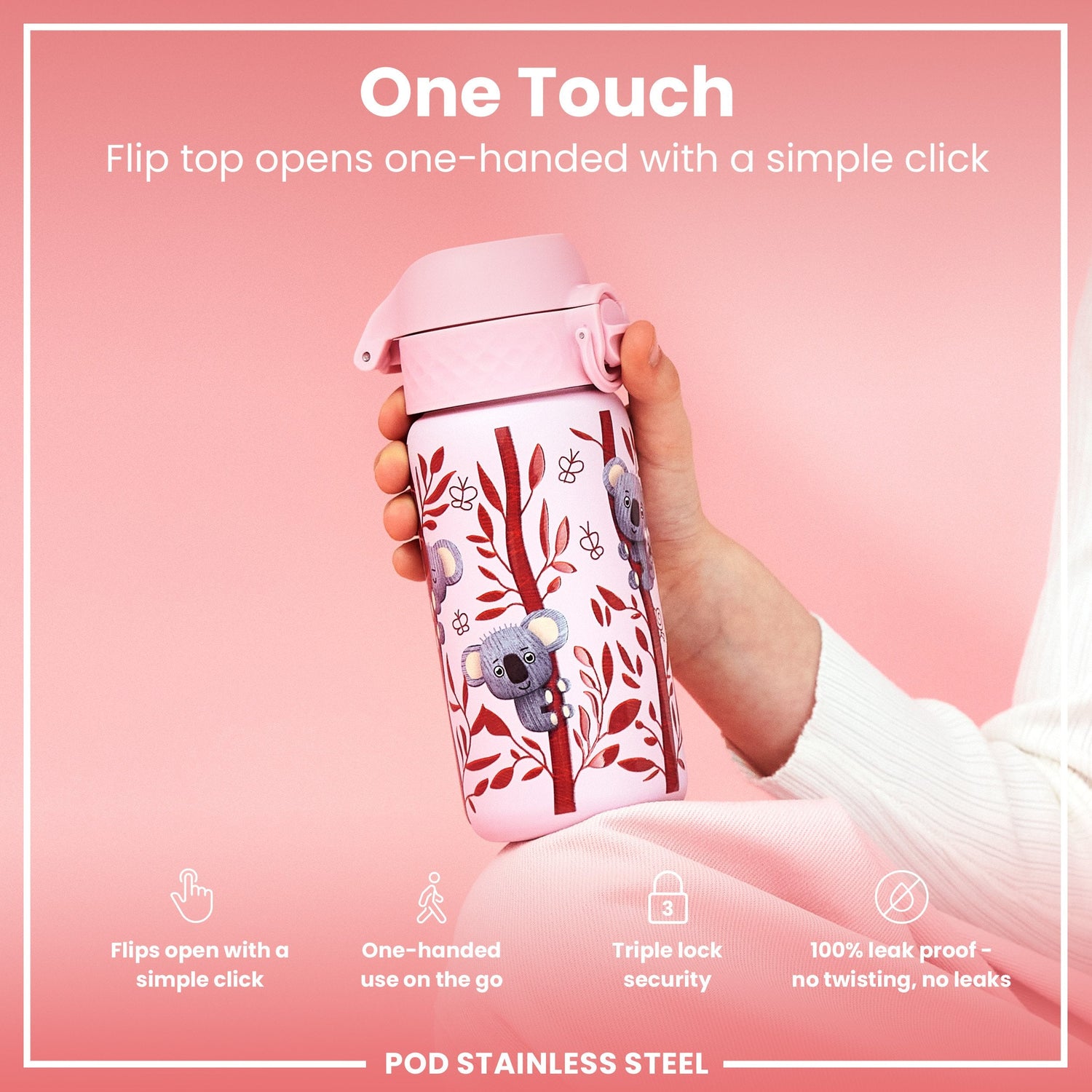 ION8 Leak Proof Kids Water Bottle, Stainless Steel, Koalas, 400ml (13oz)