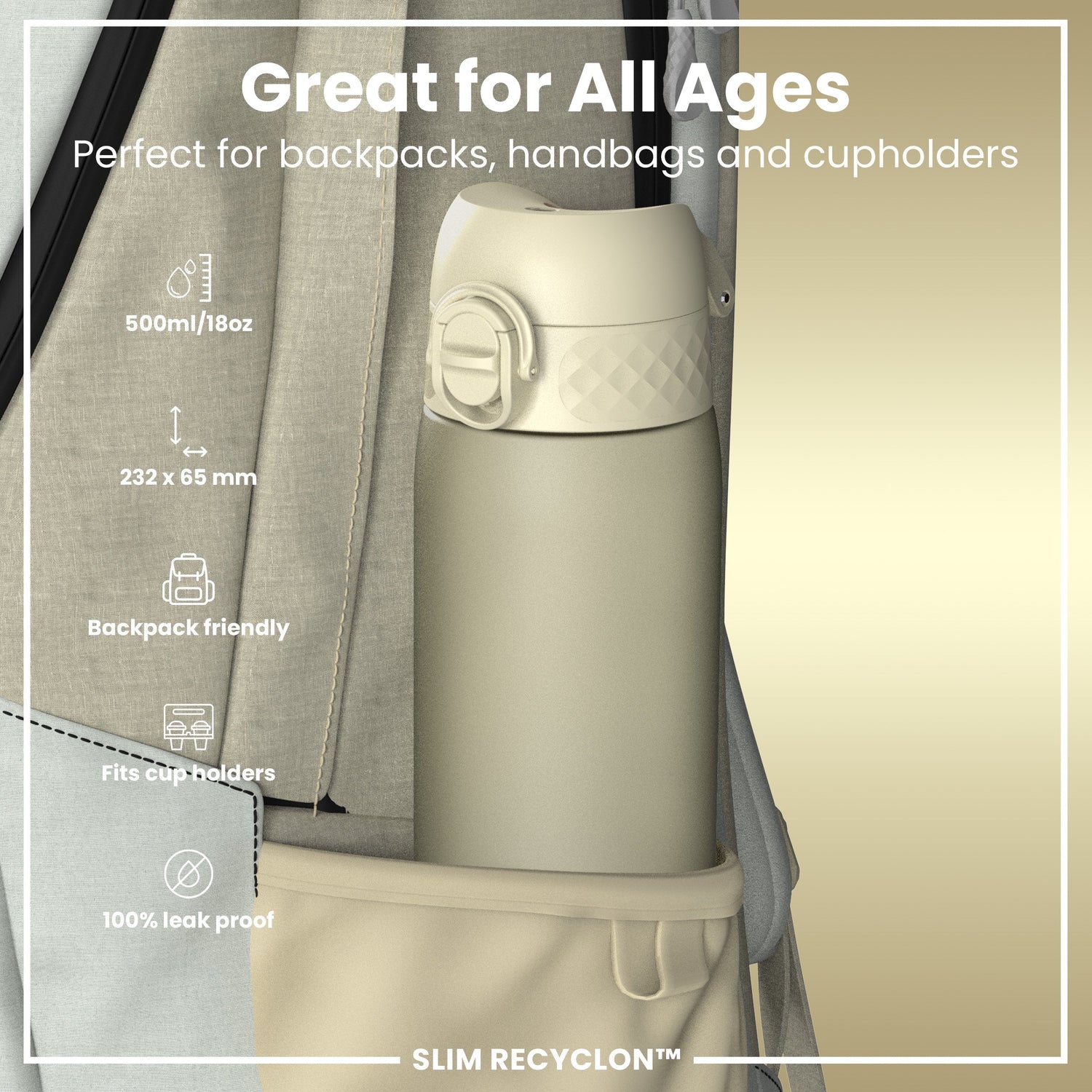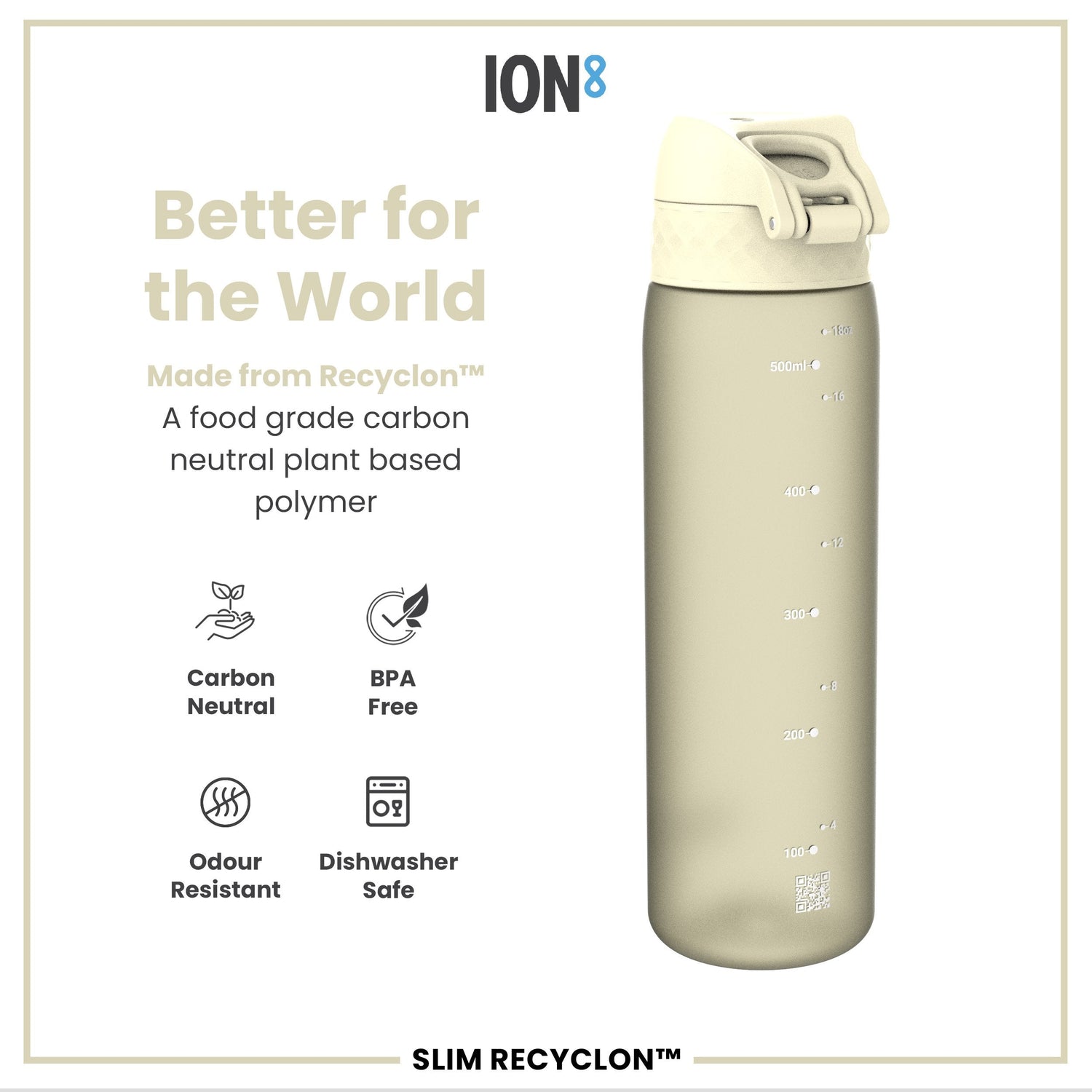 ION8 Leak Proof Slim Water Bottle, Recyclon, Creamy White, 500ml (18oz)
