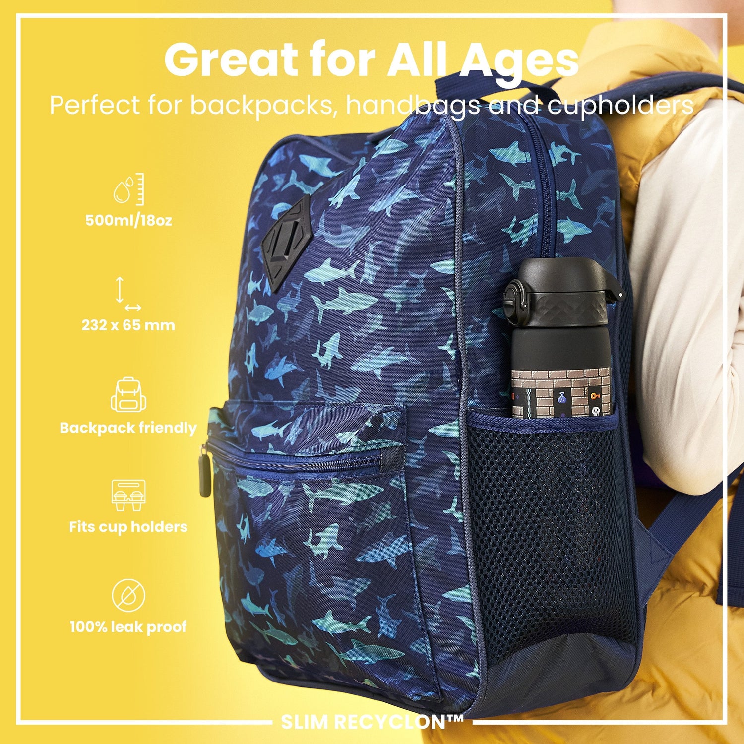 The Gamer design adds a vibrant touch to your daily routine, while the one-handed operation flip-top lid with a secure sliding lock makes drinking on the move effortless. Plus, it's dishwasher safe, ensuring easy cleaning and maintenance.