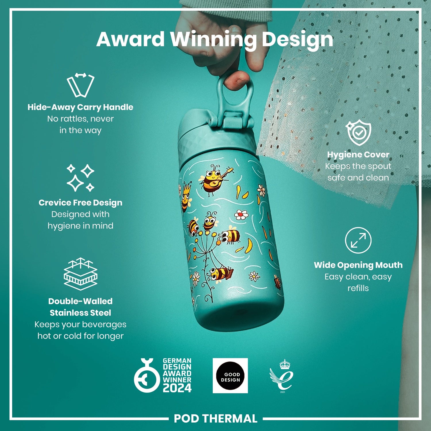 ION8 Leak Proof Thermal Steel Water Bottle, Insulated, Bees, 320ml (11oz)