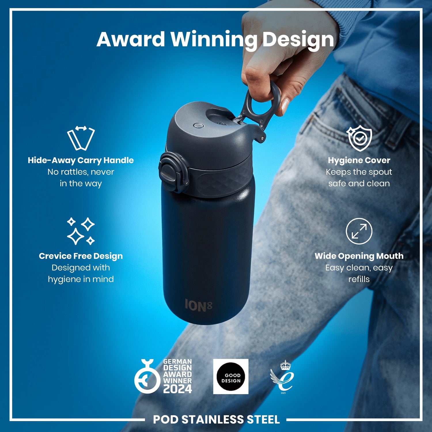 ION8 Leak Proof Water Bottle, Stainless Steel, Ash Navy, 400ml (13oz)