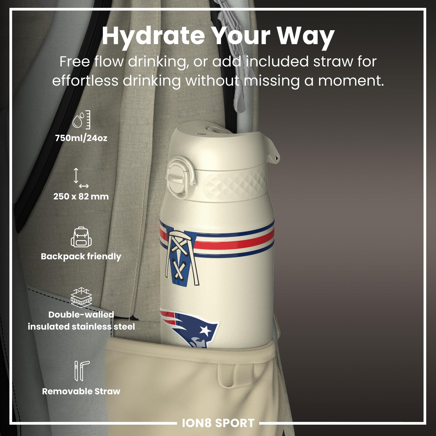 NFL x ION8 Insulated Steel Water Bottle, NFL Patriots, 750ml (24oz)
