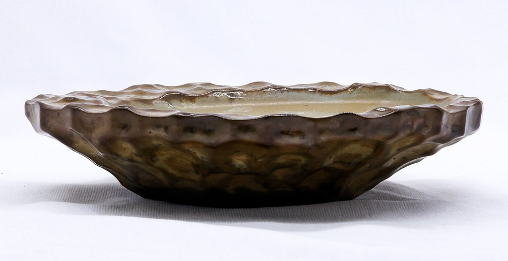 Add a touch of handcrafted elegance to your meals with the Bronze Olive Drift / Seashell Serenity stoneware dinner plate. Each plate is shaped by skilled hands from high-quality clay and finished with a rich glaze that blends earthy bronze-olive tones with serene seashell-inspired hues, giving every piece a unique, organic character. The subtle variations in texture and finish make each plate a distinctive item that adds warmth and personality to your dining setup.