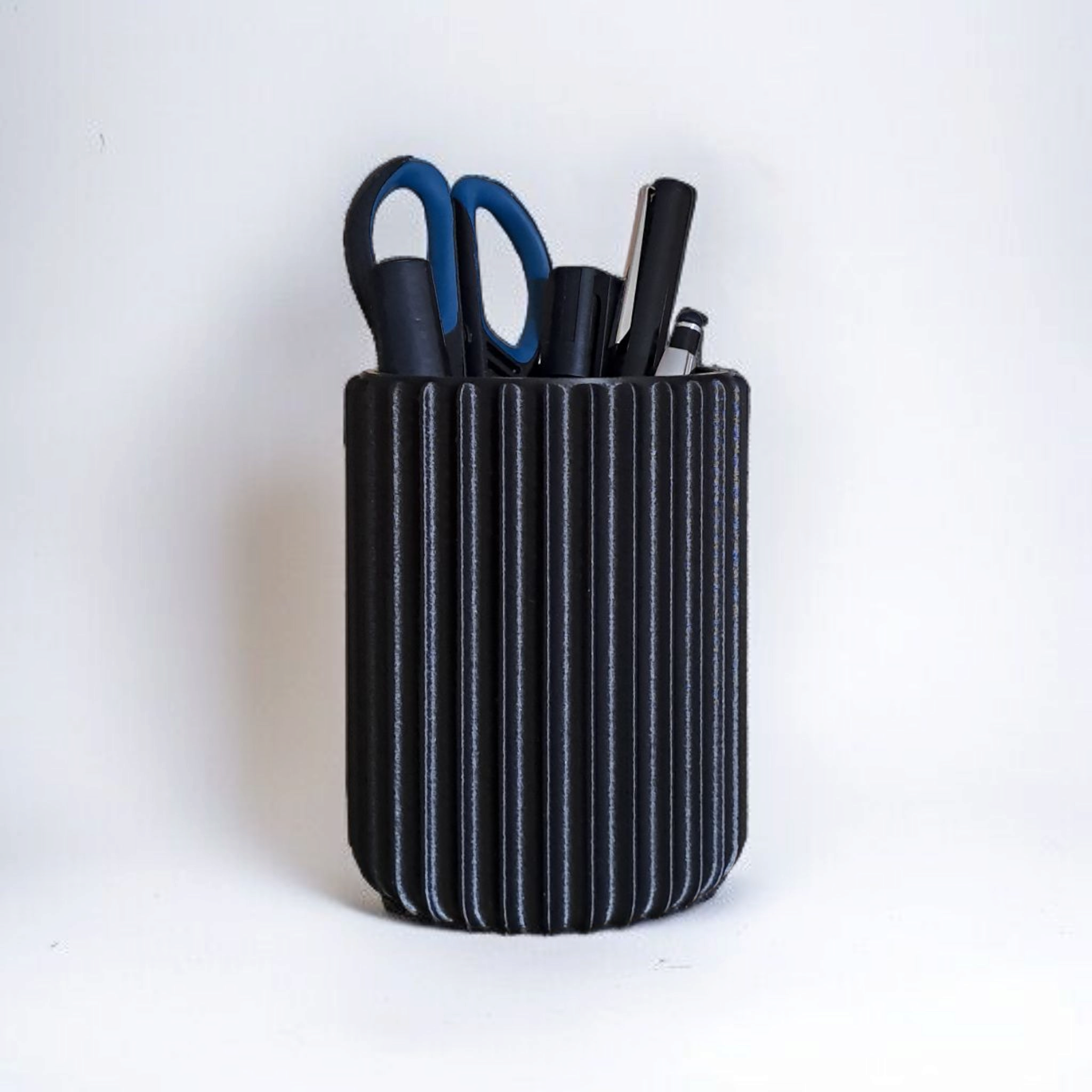 Bring timeless style and tactile charm to your workspace with this beautifully crafted ribbed pen holder. Featuring a unique fine fuzzy skin texture, this piece combines classic form with modern 3D printing precision to create a truly unique desk accessory that you'll love to touch.