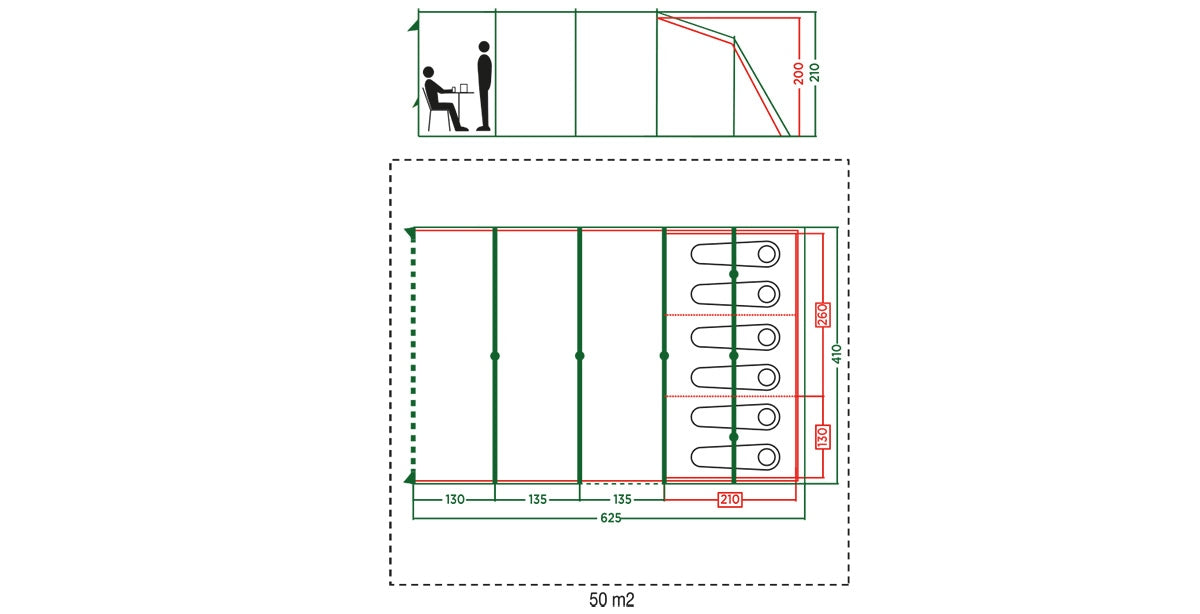 The tent's outer fabric is fire retardant and for extra security, the zipper stoppers on the tent doors ensure that zips are always within easy reach in the event of an emergency, even for children.
