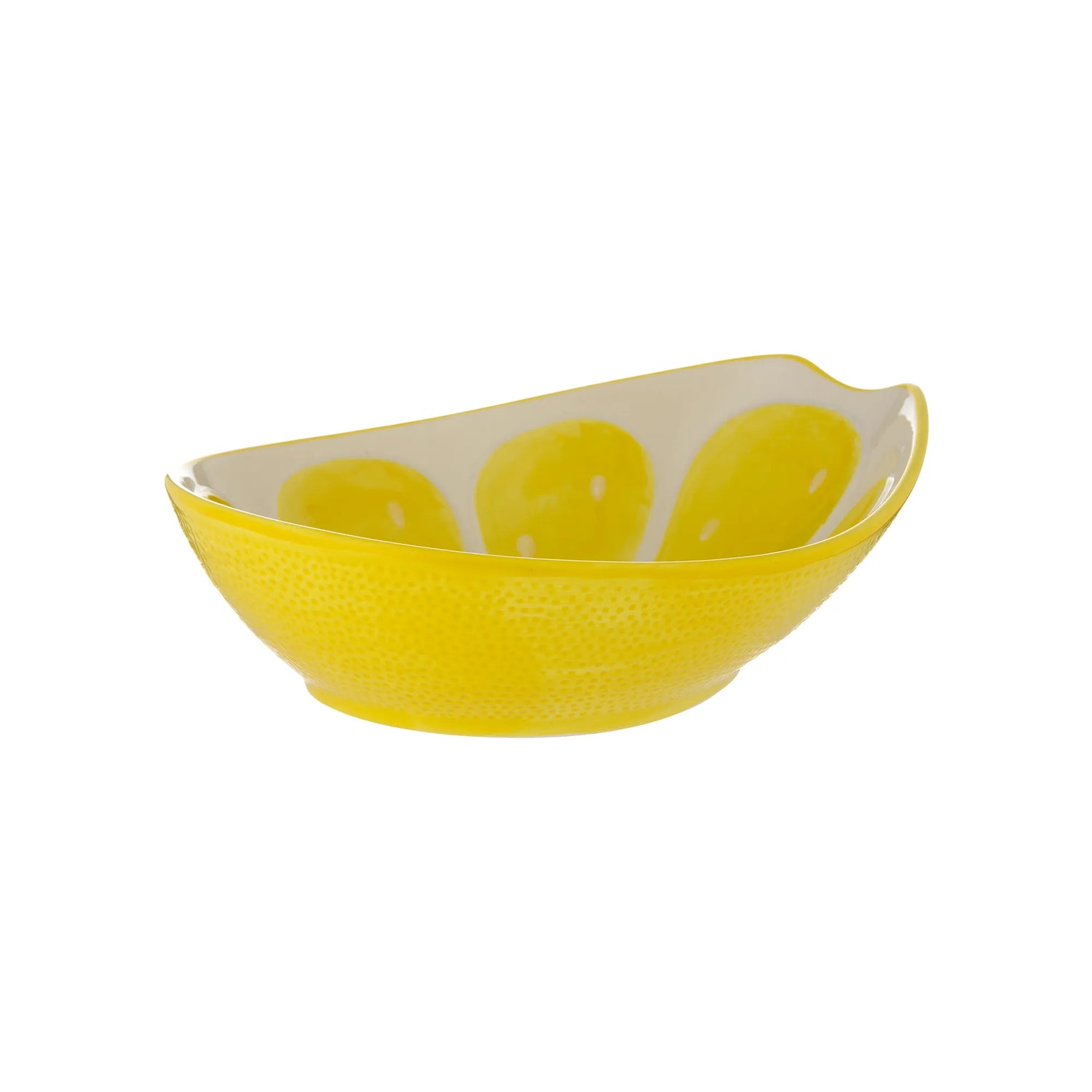Give your dining table a cheerful update with the Typhoon Lemon Oval Serving Bowl. This beautifully crafted piece features a bright lemon-yellow exterior with an embossed fruit texture and a segmented interior, along with a handy groove to rest serving utensils.