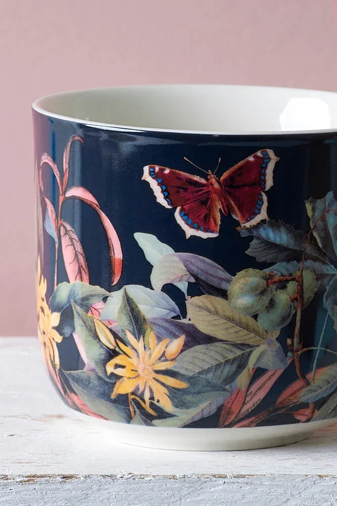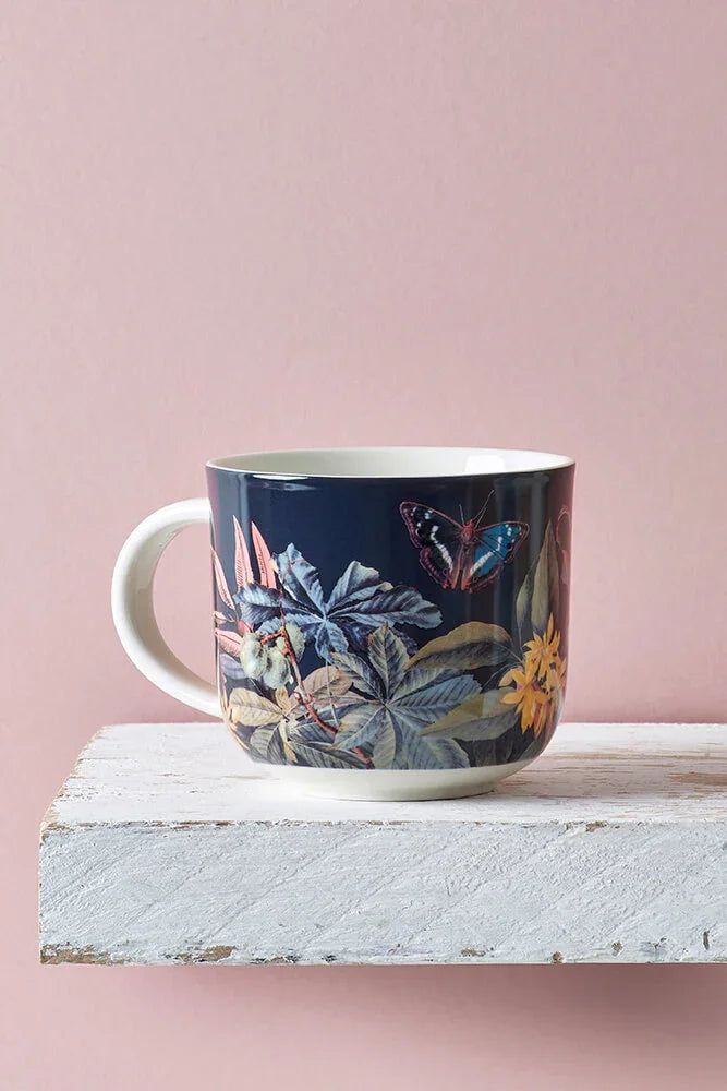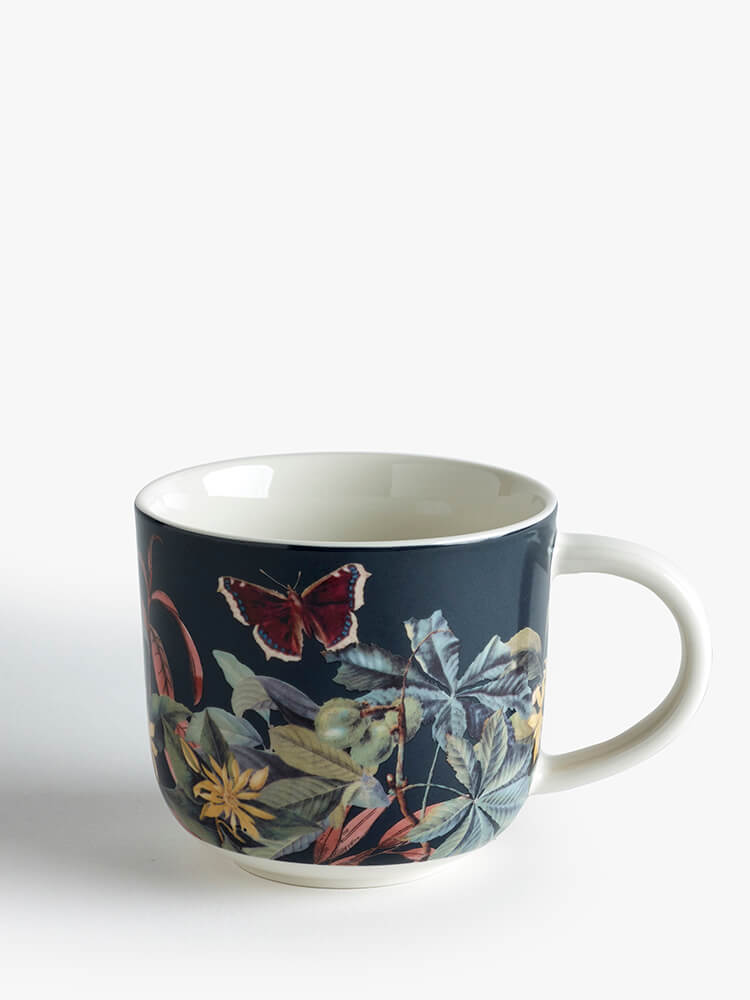 Indulge in your tea or coffee with the Kew Gardens Midnight Floral Mug. Inspired by the rich botanical archives of the Royal Botanic Gardens, Kew, this mug showcases intricate floral illustrations on a deep midnight blue backdrop.