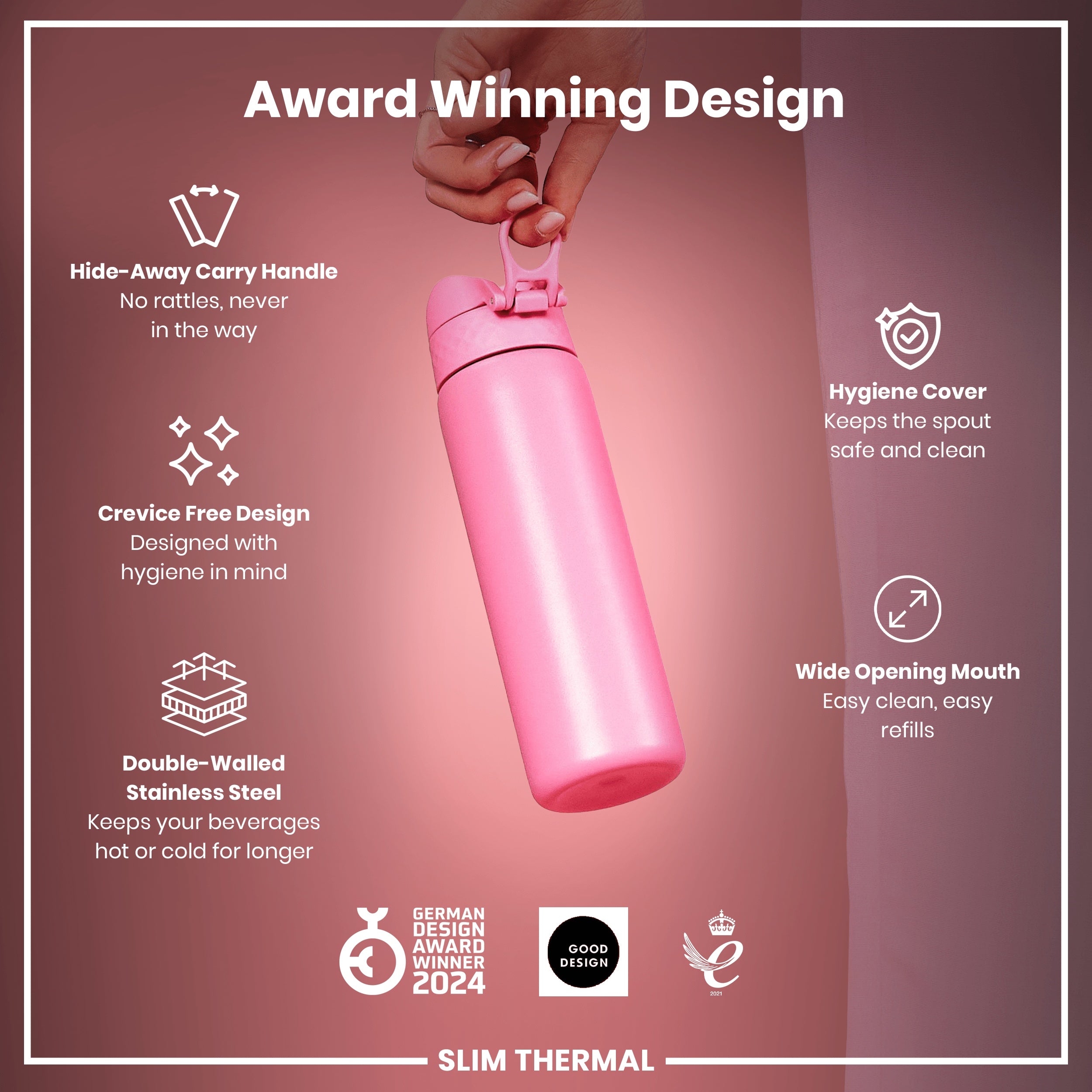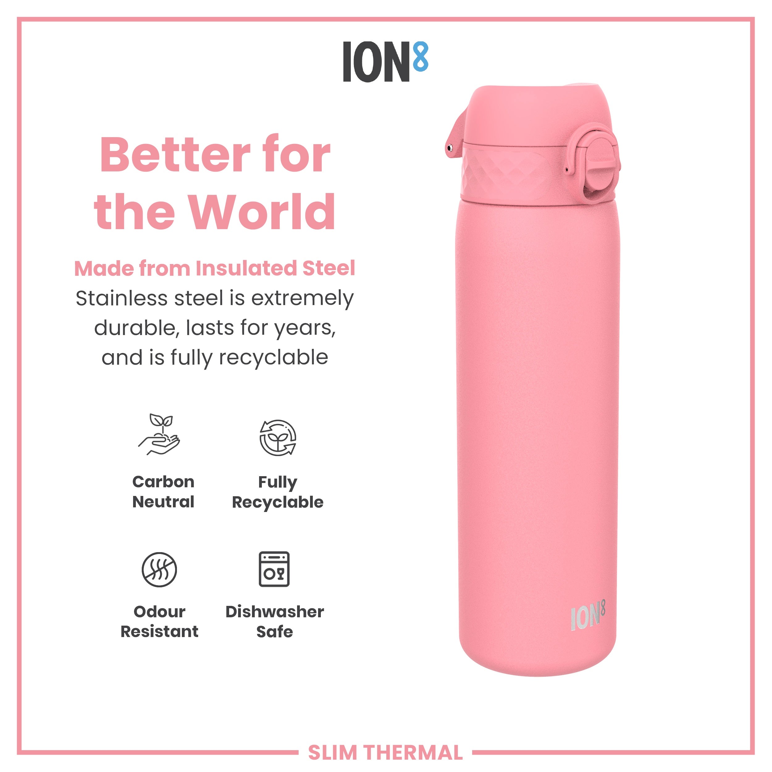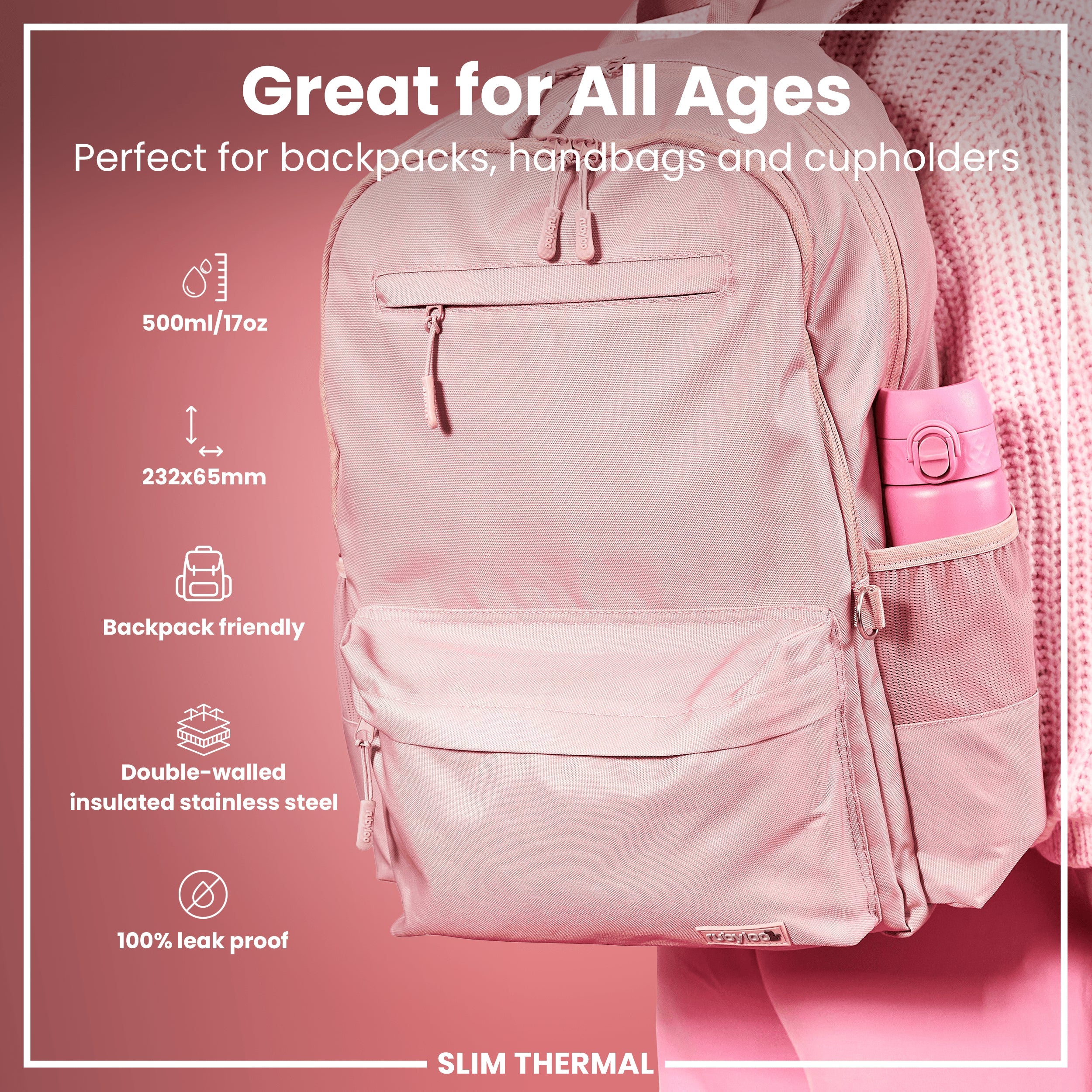 Slim and lightweight, the 500 ml capacity sits comfortably in a bag or cup-holder, making it ideal for everyday hydration on the go. The elegant Rose-Bloom finish adds a touch of style, while the durable stainless-steel body resists rust, odours, and wear — a refillable, sustainable alternative to single-use plastic bottles.
