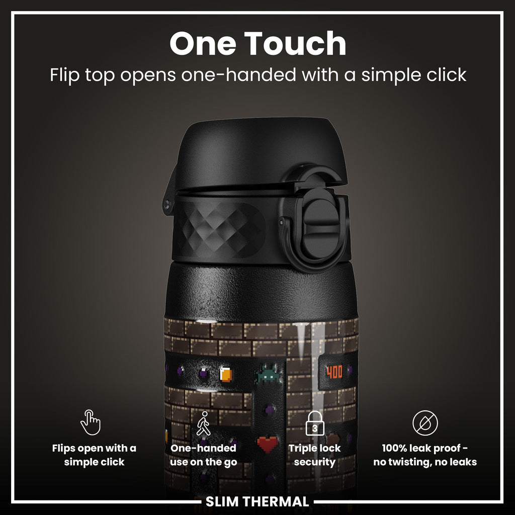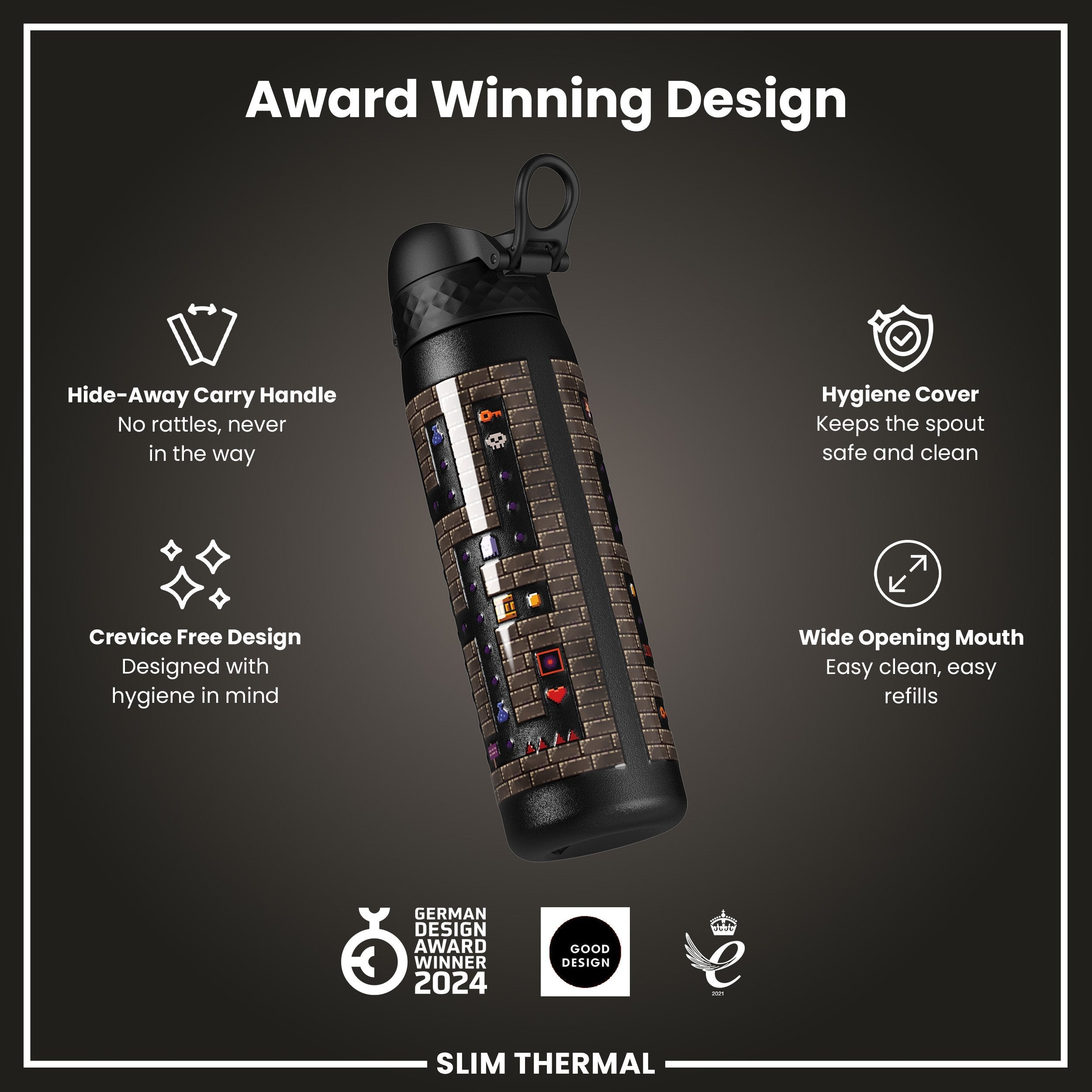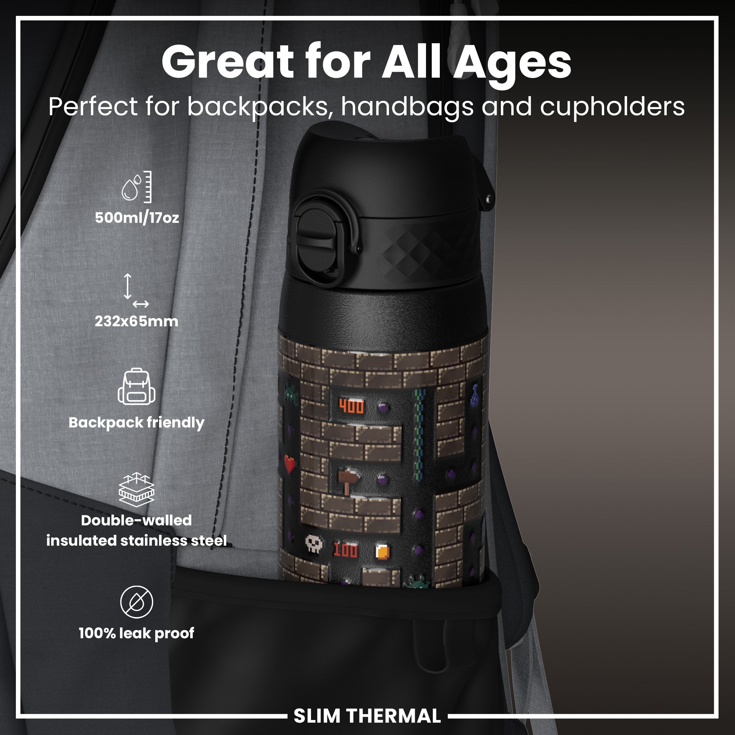Leak Proof Slim Thermal Water Bottle, Insulated Steel, Gamer, 500ml (17oz)