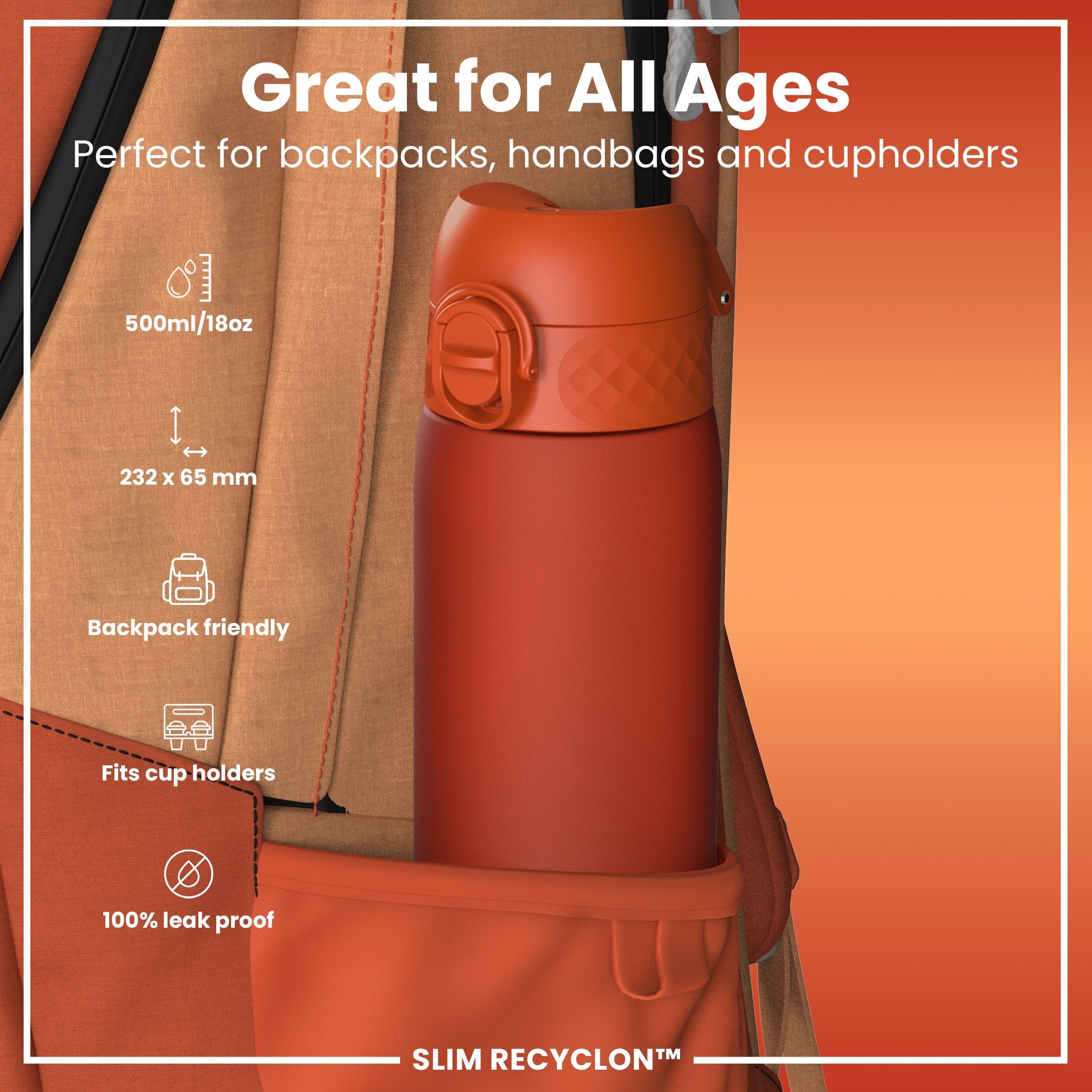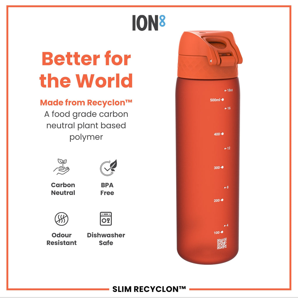 Leak Proof Slim Water Bottle, Recyclon, Hearty Orange, 500ml (18oz)