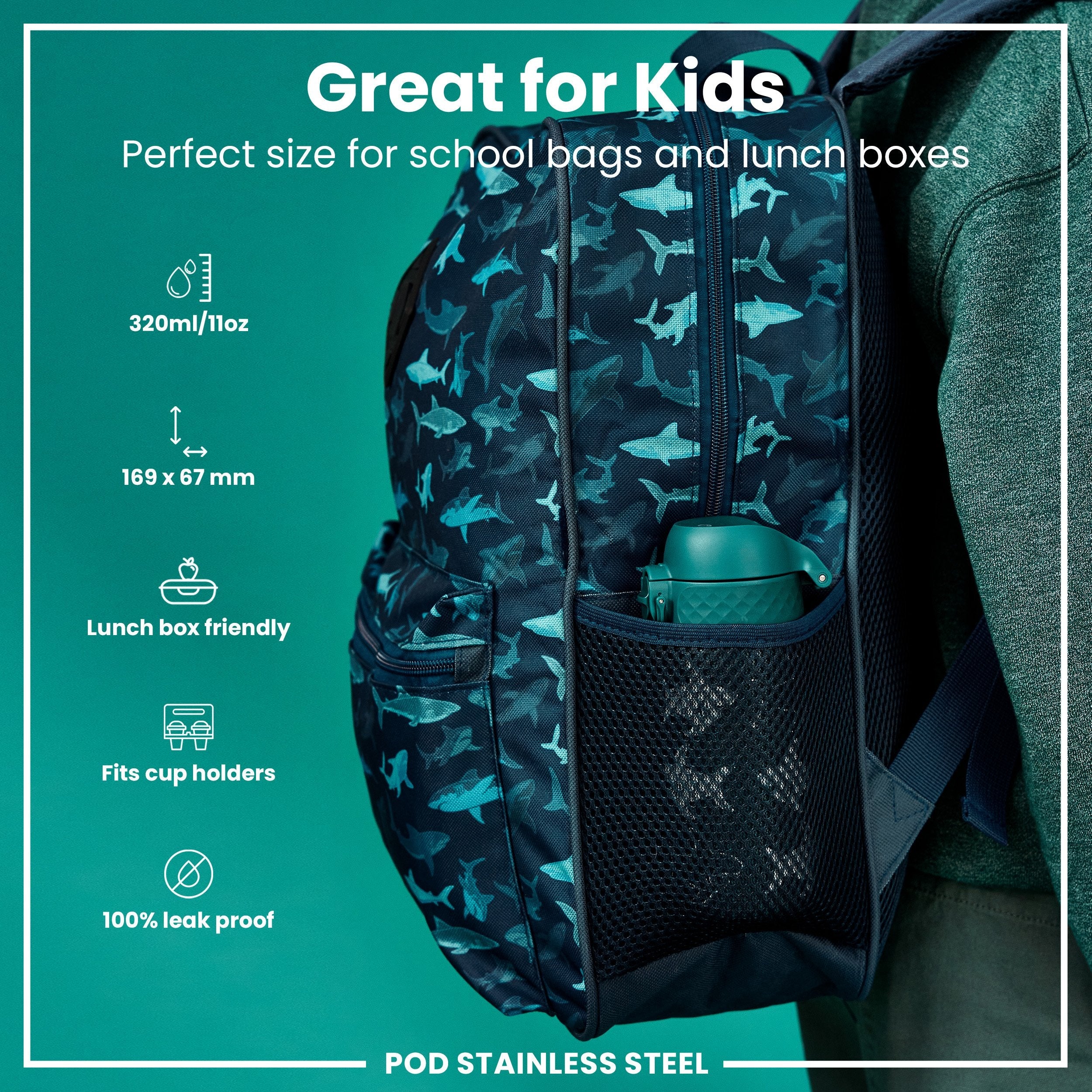 Leak Proof Thermal Steel Water Bottle, Insulated, Sharks, 320ml (11oz)