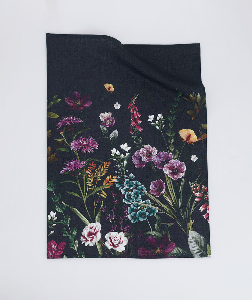 Enhance your kitchen decor with the MM Living Maisie Tea Towel. Crafted from a blend of 50% cotton and 50% linen, this towel offers both durability and a luxurious feel. The towel features a vibrant floral design set against a dark background, adding a pop of color and sophistication to your kitchen. Measuring 50 cm x 70 cm, it's the perfect size for everyday use.