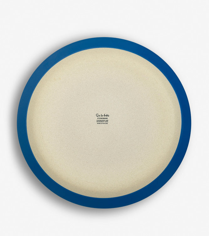 Enhance your dining experience with the Sur La Table Blue Dinner Plate. Crafted from high-quality stoneware, this plate features a vibrant blue glossy glaze complemented by a contrasting raw base, adding a touch of elegance to your table setting. Measuring 27.5 cm in diameter, it's perfect for serving mains, salads, or desserts. The durable construction ensures longevity, while the microwave and dishwasher-safe design offers convenience for everyday use. Mix and match with other pieces in the Colour Me Happy collection to create a truly eye-catching table display.