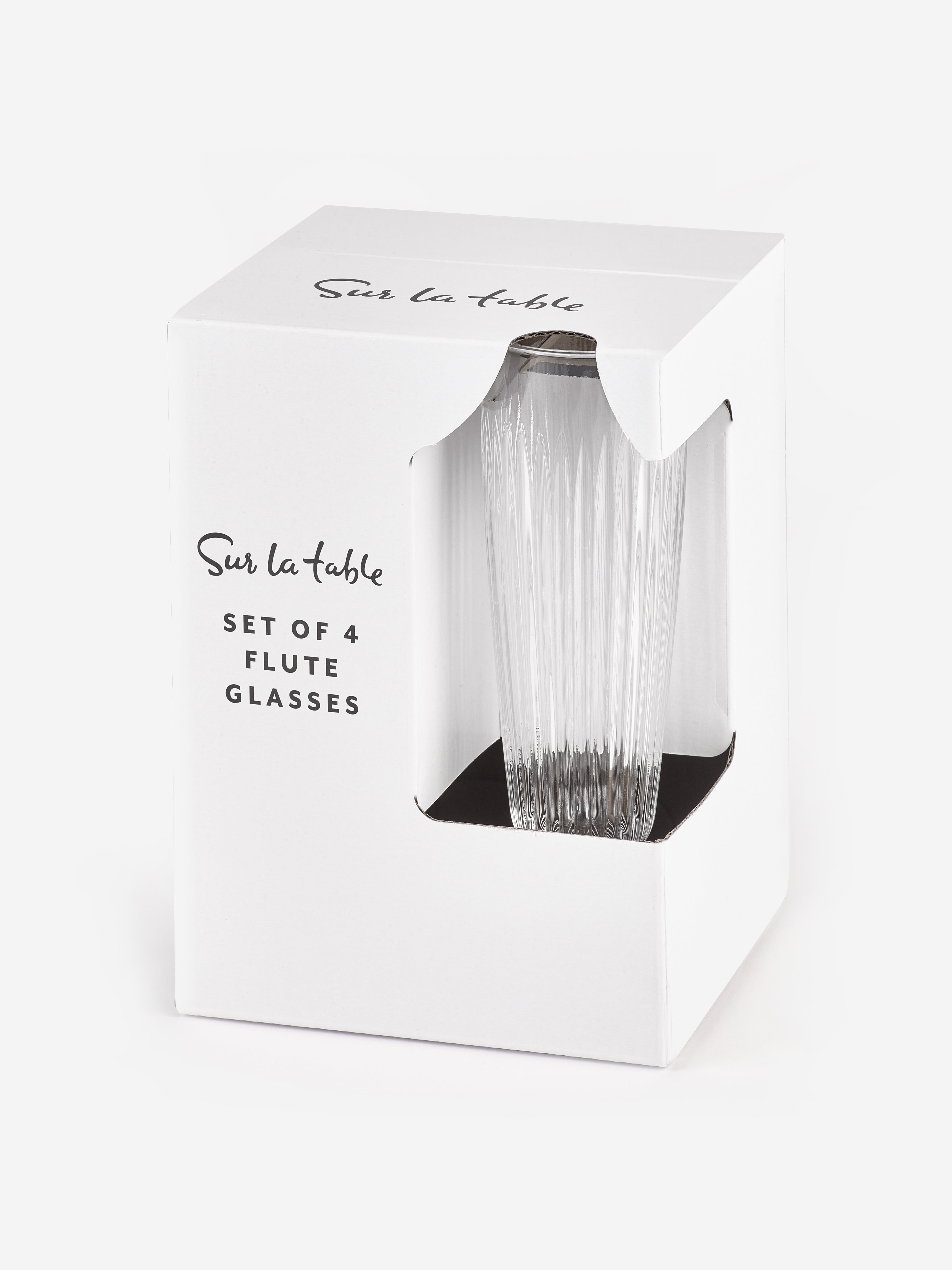 Toast in style with the Sur La Table Ribbed Flute Glasses. Crafted from durable soda glass, these refined flutes feature a delicate ribbed texture that enhances their timeless beauty while catching the light with every pour. Perfectly shaped for champagne and sparkling cocktails, these flutes offer both elegance and durability. The etched Sur La Table logo on the base adds an exclusive touch, making them a must-have for any celebration or intimate gathering.