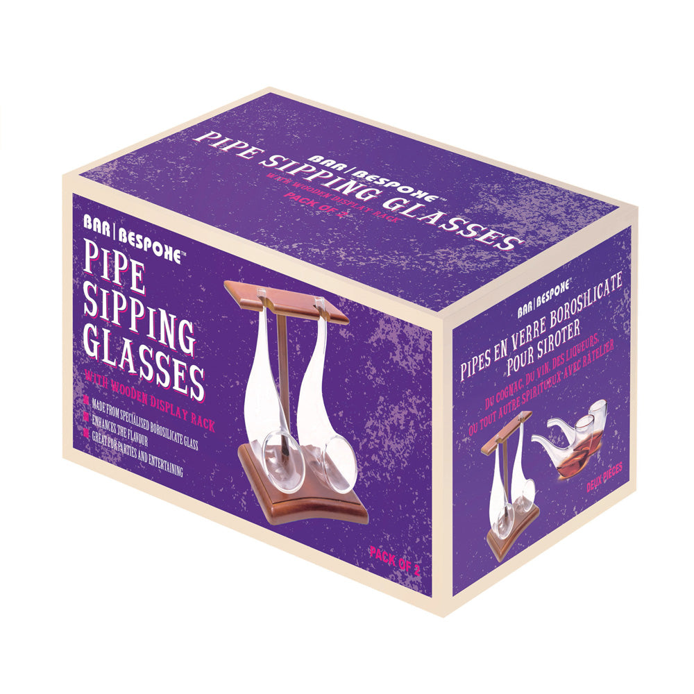 Elevate your sipping experience with these exquisitely crafted hand-made glass pipes! Designed with a user-friendly bowl that effortlessly holds your beverage, these pipes allow the drink’s aroma to unfold as you savour each sip through the slender tube, enhancing its flavour. The pipe is designed to rest securely on a table between sips, or you can cradle the bowl in your hand to warm spirits like brandy. Made from durable borosilicate glass, each pipe has a capacity of 75 ml and comes with a stylish wooden stand.