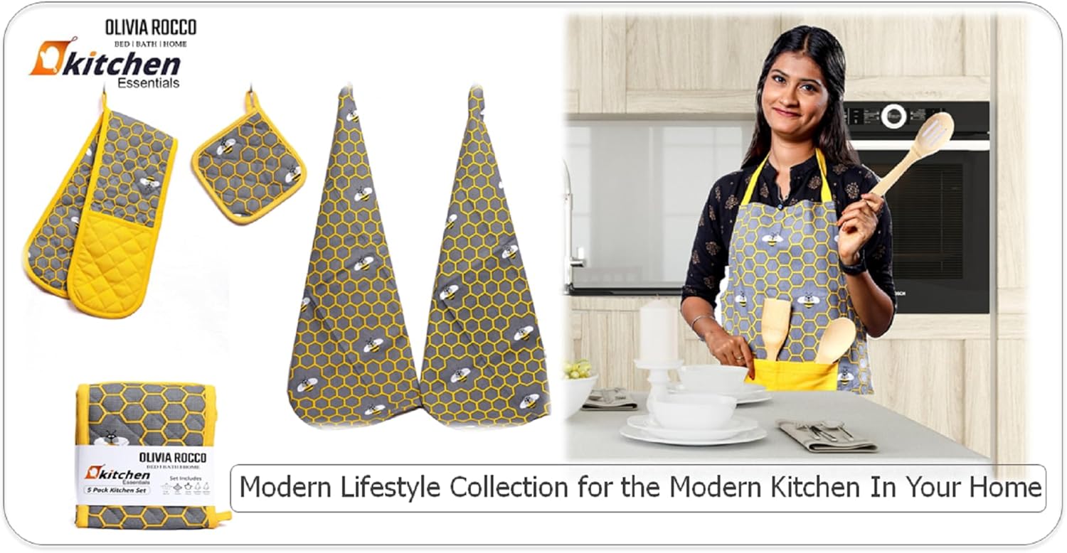 5 Pack Kitchen Sets Apron + Oven Gloves + Towel Set + Pot Holder by OLIVIA ROCCO