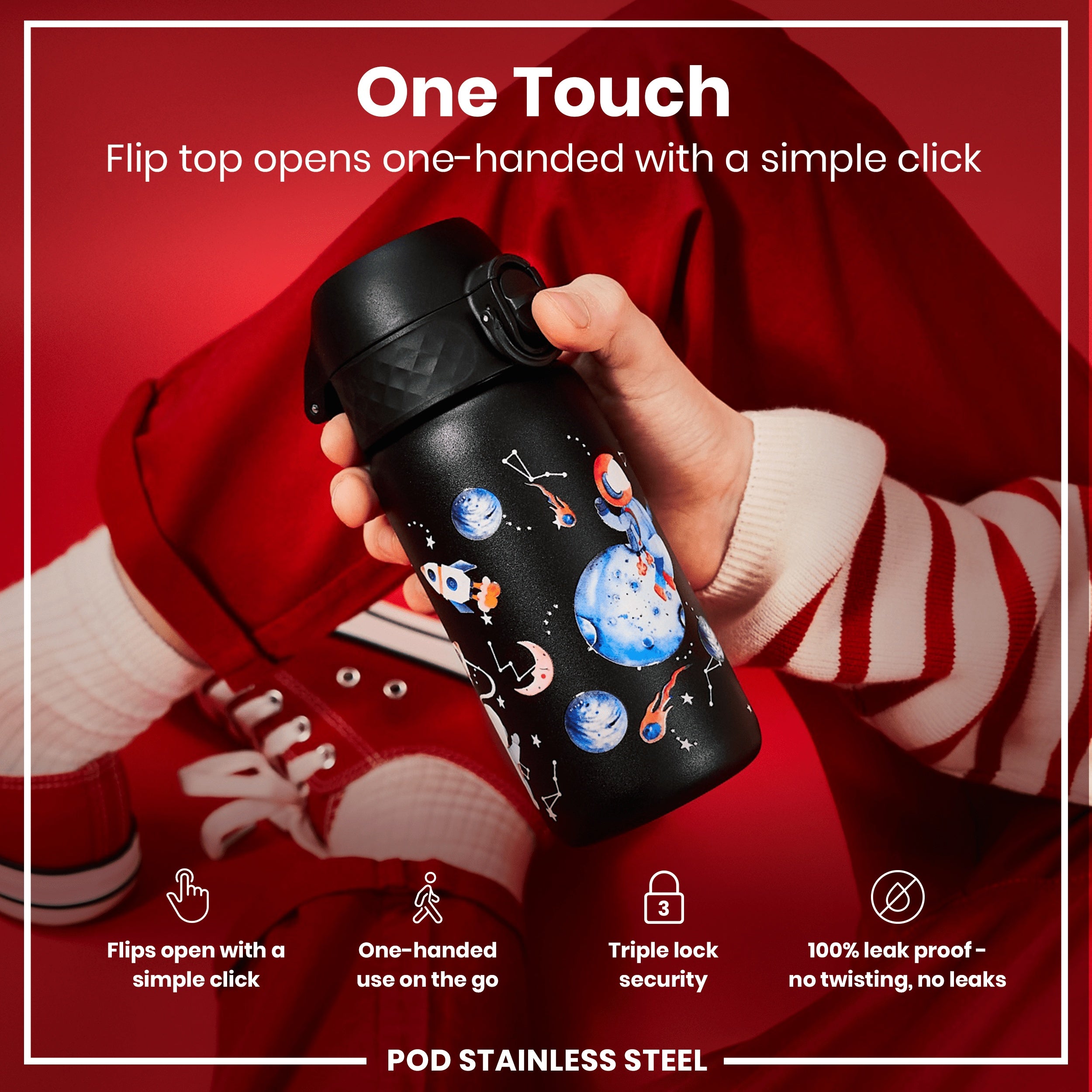 The Ion8 Leak-Proof Kids Water Bottle – Stainless Steel, Space Design, 400ml (13oz) combines functionality, style, and sustainability. Crafted from durable, food-grade stainless steel, this bottle is designed to withstand the rigors of daily use.