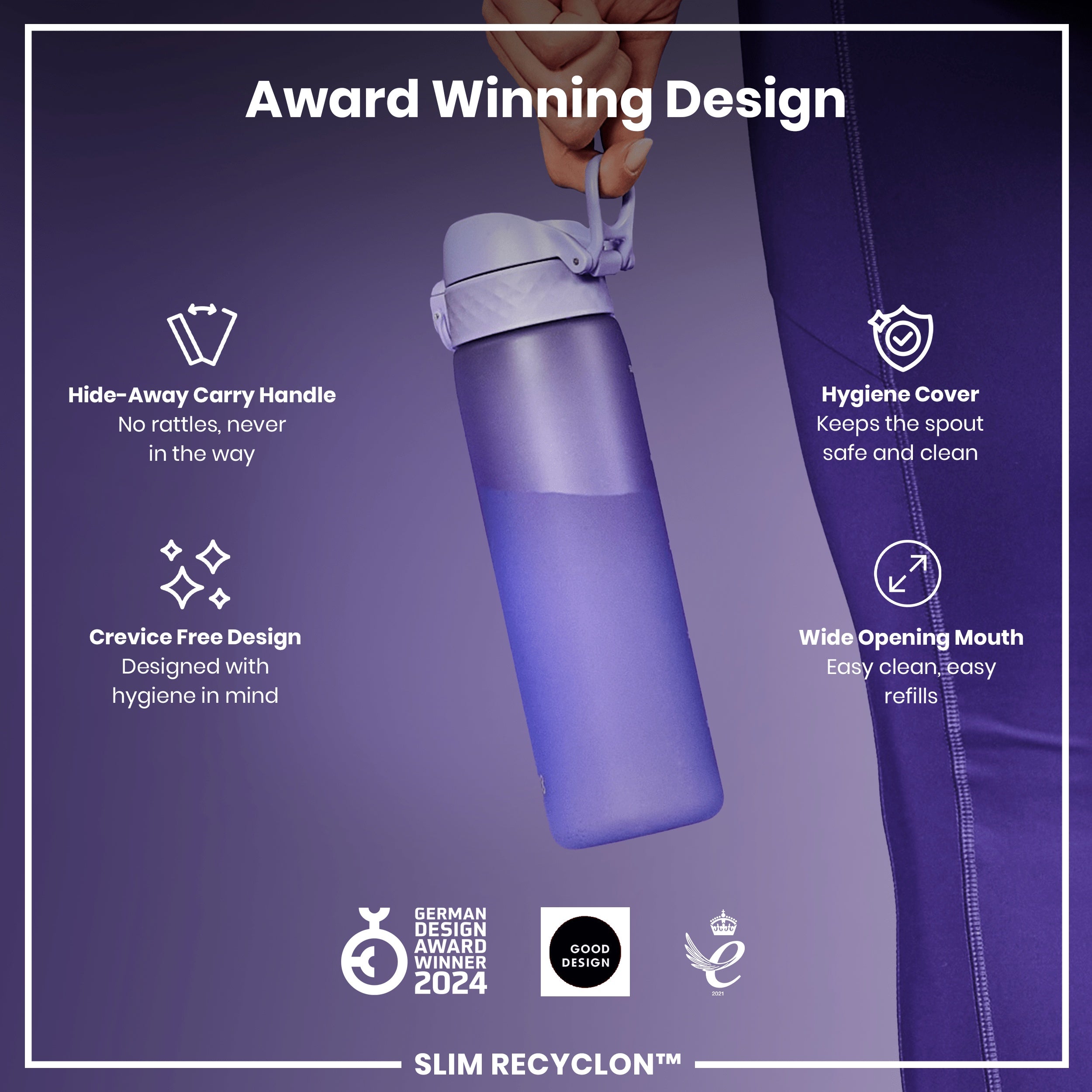 The Leak-Proof Slim Water Bottle in Recyclon – Light Purple delivers a practical, eco-conscious hydration solution for everyday use. Its slim profile and 500 ml capacity make it ideal for carrying in bags, backpacks or cup holders — whether you’re commuting, at the office, gym or out and about. The leak-proof lid ensures a secure seal, giving you peace of mind when the bottle is stored upright or sideways.