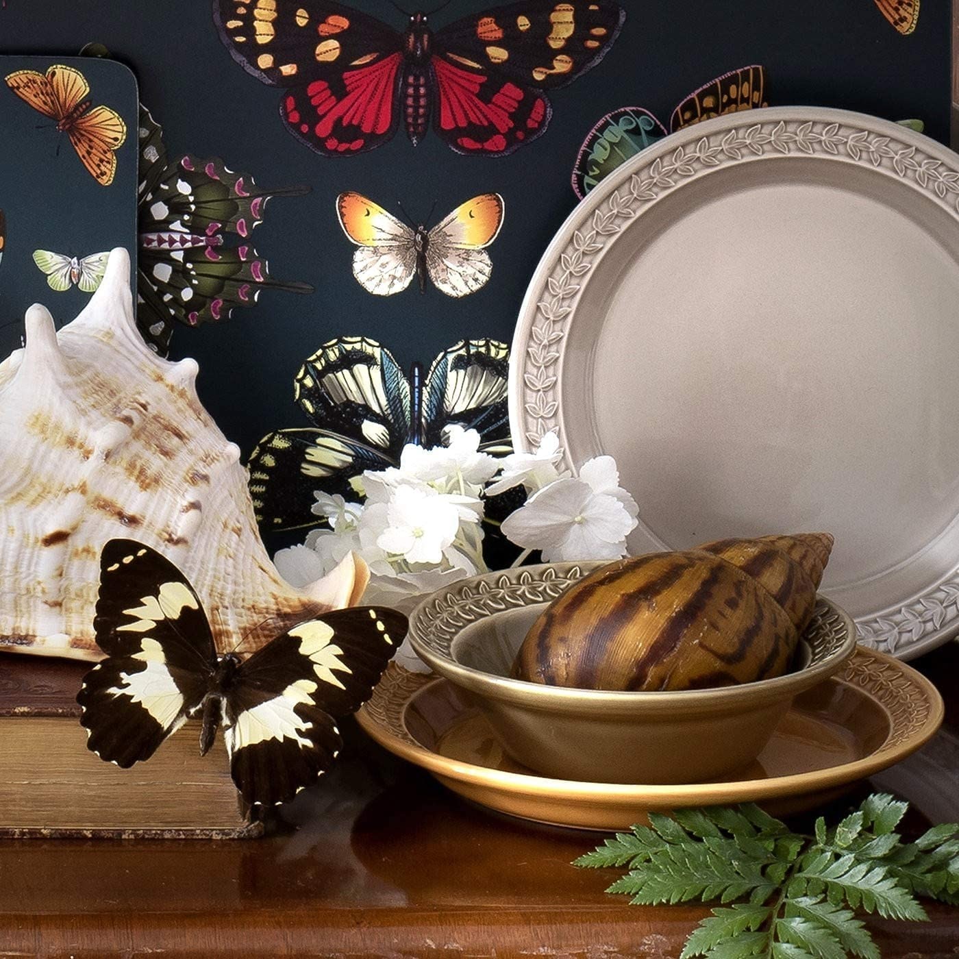 Bring a touch of vintage-inspired charm to your breakfast table with the Portmeirion Botanic Garden Harmony Amber Cereal Bowls, set of four. Crafted from high-quality earthenware in Stoke-on-Trent, England, each bowl features an embossed laurel-leaf rim, a hallmark of the Botanic Garden design. The rich amber glaze adds warmth and character, making these bowls just as well suited for soup, dessert, or snacks as for cereal.