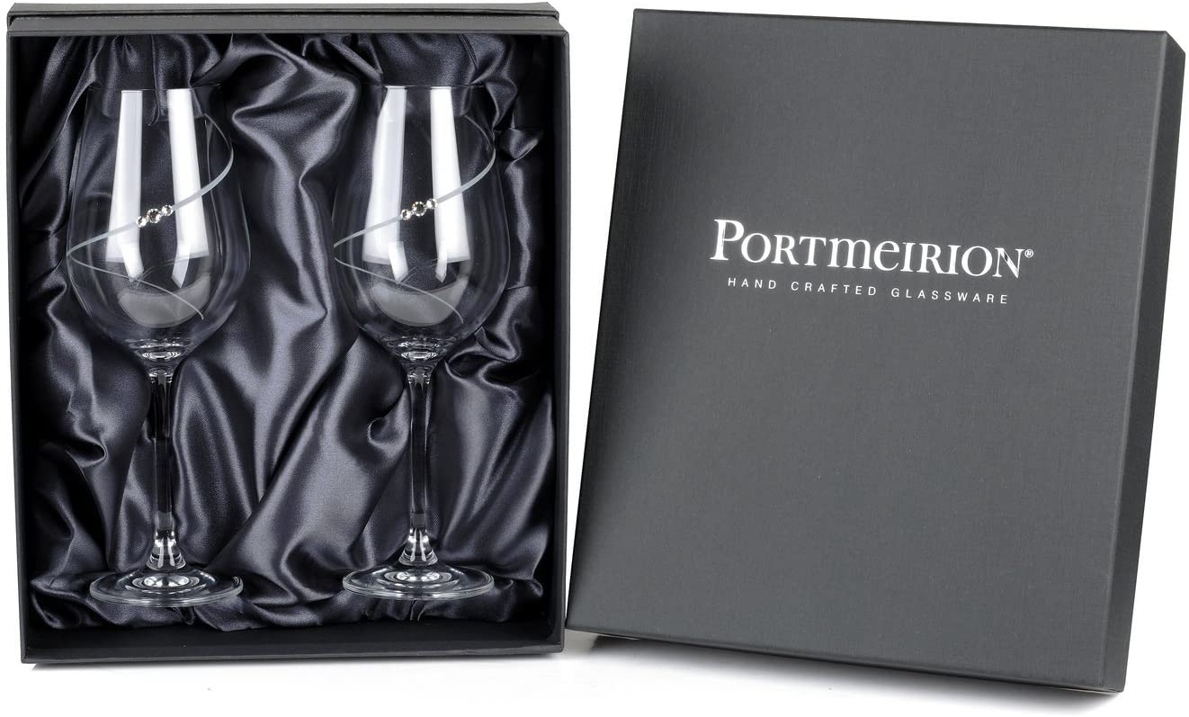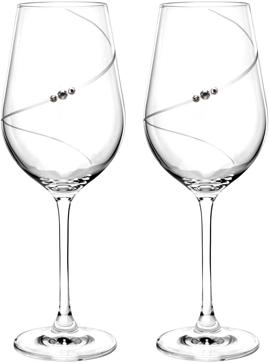 This stunning pair of Auris Red Wine Glasses is hand cut and hand polished, combining classic and contemporary designs. The sophisticated pattern wraps itself around the body of the glass and is finished with sparkly Swarovski crystals, creating a delicate and elegant piece. Beautifully gift boxed, they make a perfect gift for anniversaries and other special occasions.