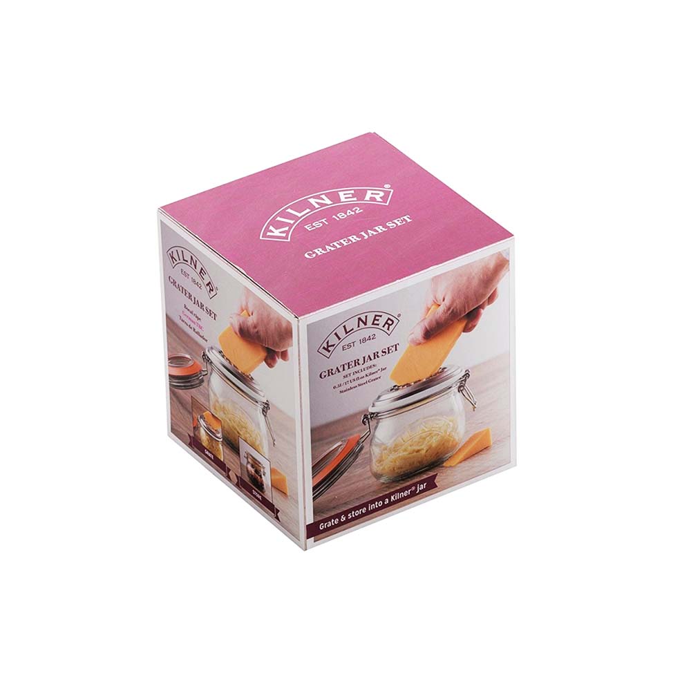 Make food prep easier with the Kilner Grater Jar Set, combining a classic clip-top glass jar with a stainless steel grater attachment for quick grating straight into the container. Designed for everyday kitchen tasks, it’s perfect for grating cheese, carrots, nutmeg, ginger and other ingredients directly into the jar before sealing and storing. The jar’s transparent glass with embossed Kilner branding adds vintage charm to your countertop or pantry.