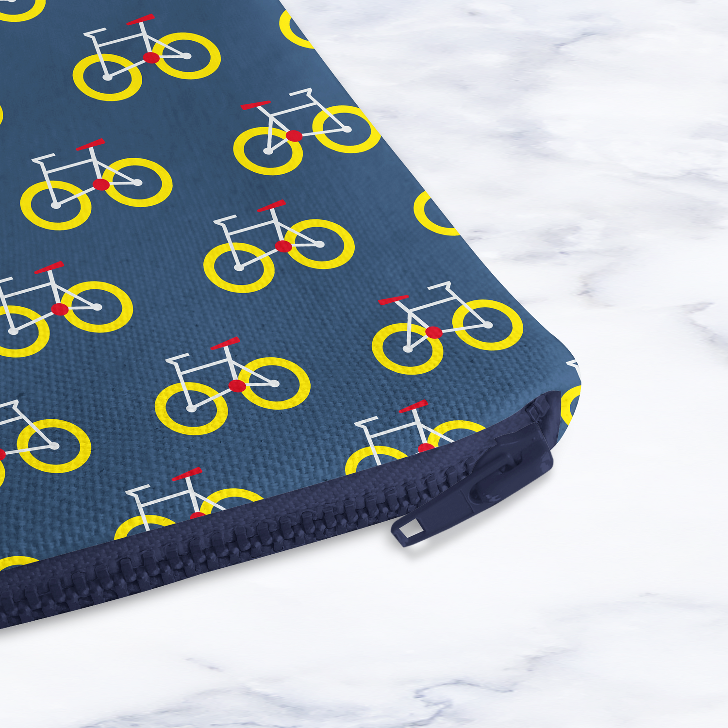 What Makes It Special: This isn't just a makeup bag - it's a statement piece that combines functionality with distinctive style. The durable construction and water-resistant lining make it perfect for busy lifestyles, while the cheerful yellow bicycle print on deep blue background adds personality to your accessories collection.