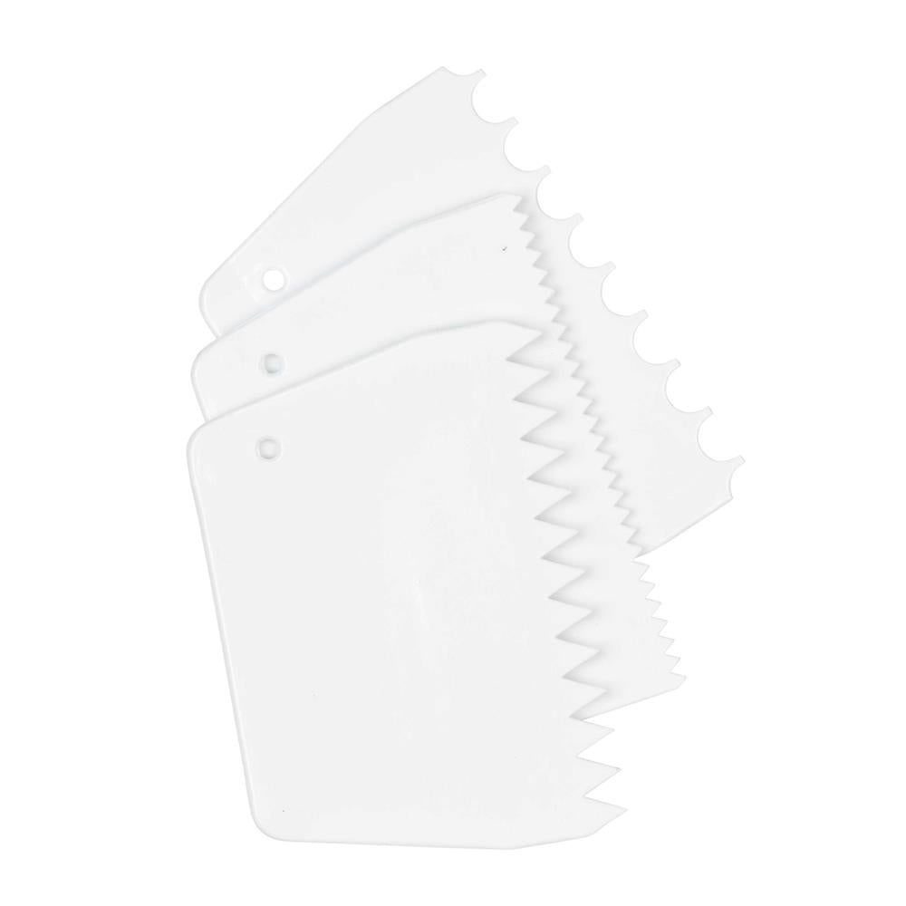 The Tala 3 Scrapers are an easy way to transform your celebration cakes into something special. Simply scrape along the side of the cake after decorating with royal icing or buttercream for a stylish texture. The pack comes with 3 various patterns.