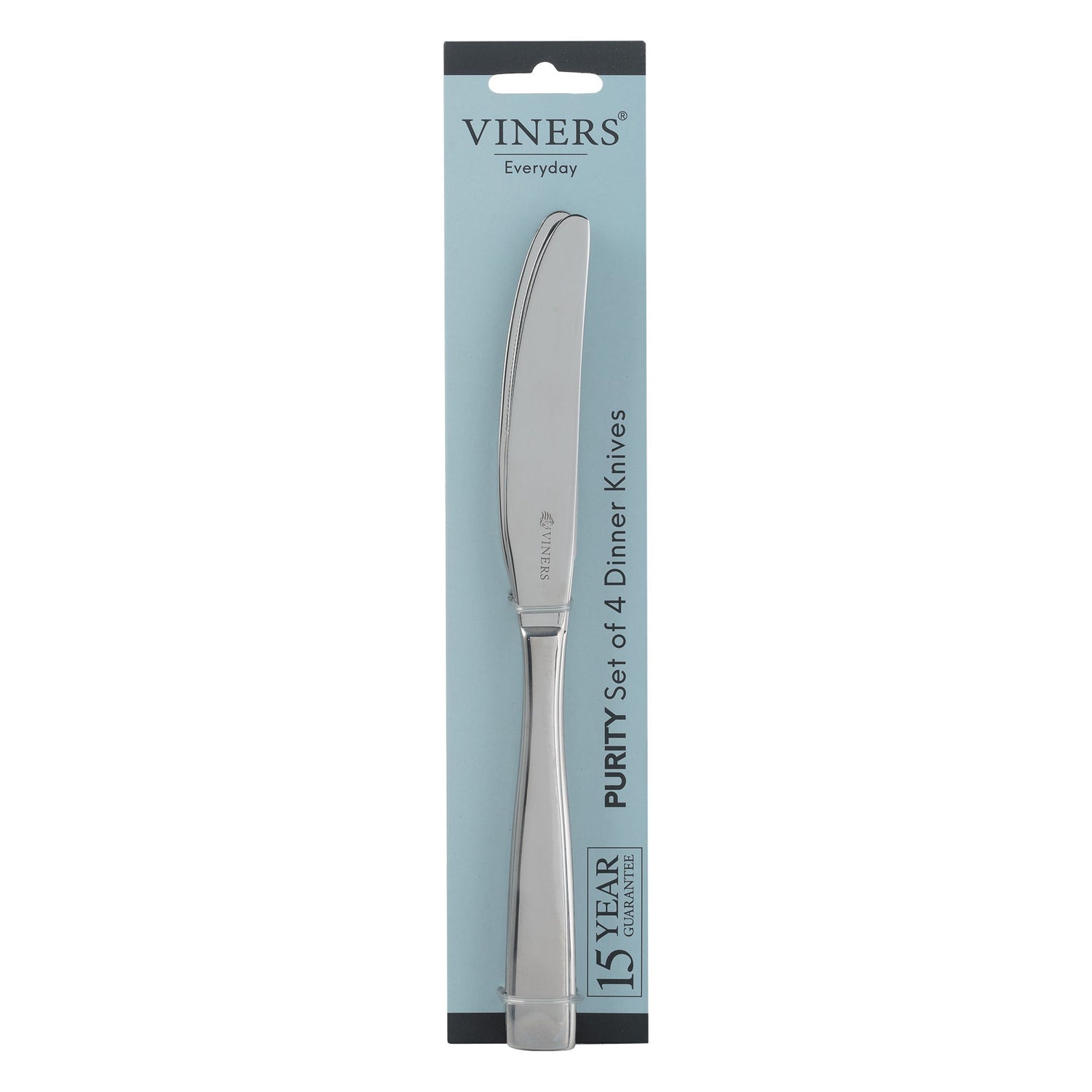 Add a timeless touch to your dining table with the Viners Everyday Purity 4-Piece Table Knife Set. These knives feature smooth, flared handles that provide a comfortable and balanced grip, crafted for both elegance and practicality.